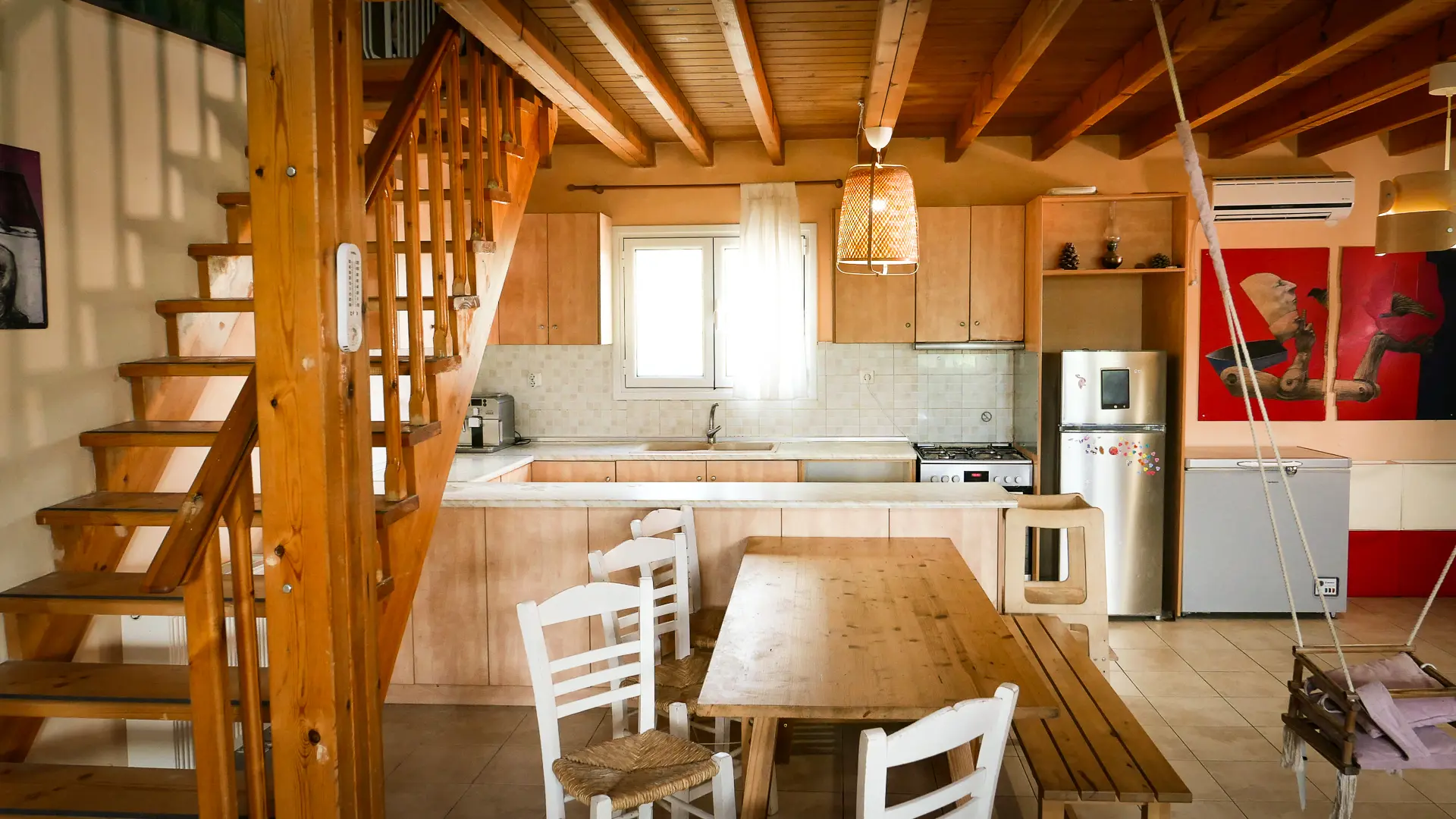 The interior lies in two floors, with vintage pieces with a modern approach.