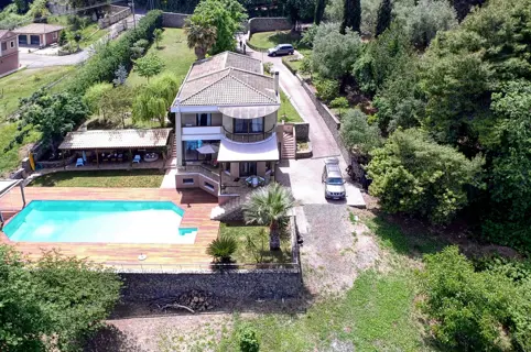 The villa boasts three well-appointed bedrooms on the first floor, while an independent guest apartment on the lower ground level provides complete amenities for added comfort. Outdoors, the thoughtfully positioned swimming pool ensures a secluded retreat throughout the day, while the adjacent barbecue area invites guests to relax and savor the essence of the Greek summer.