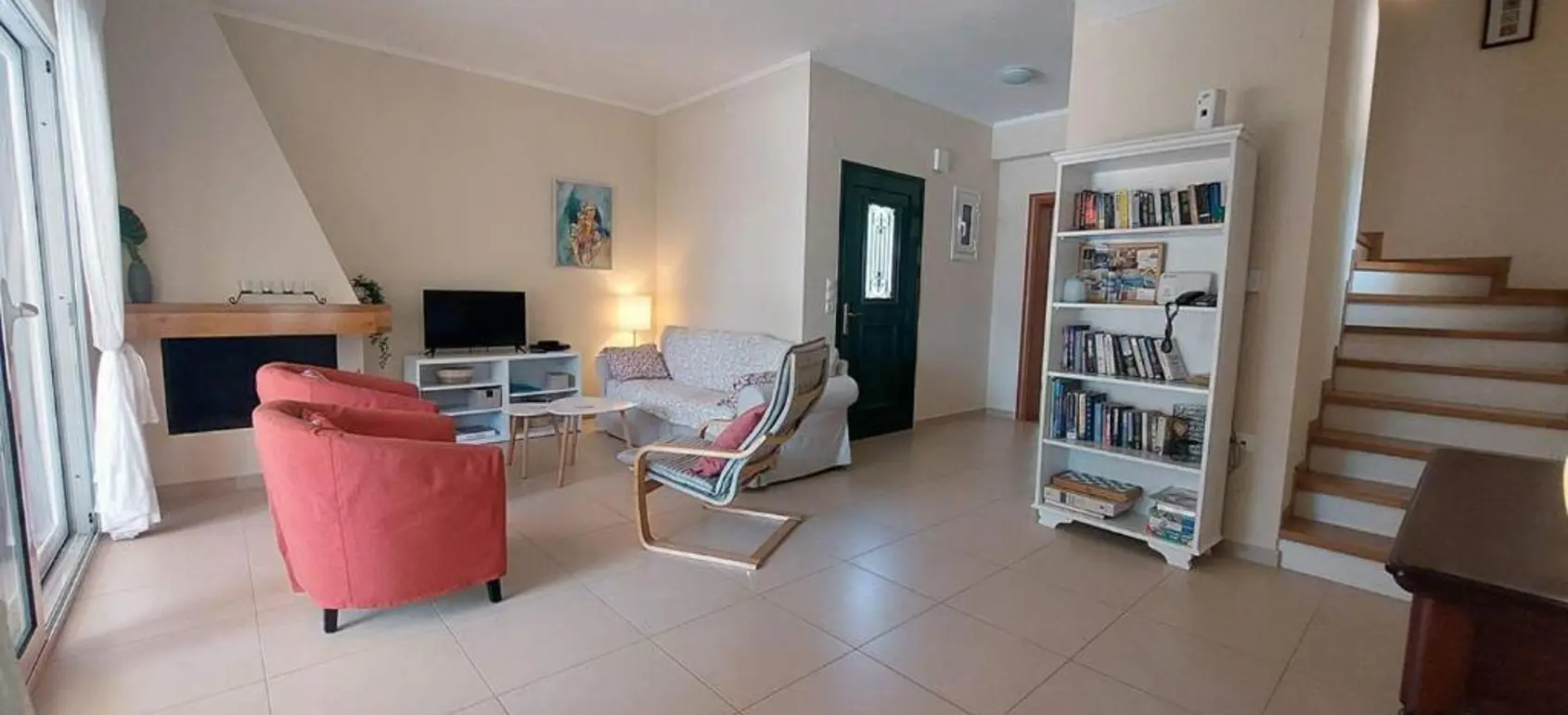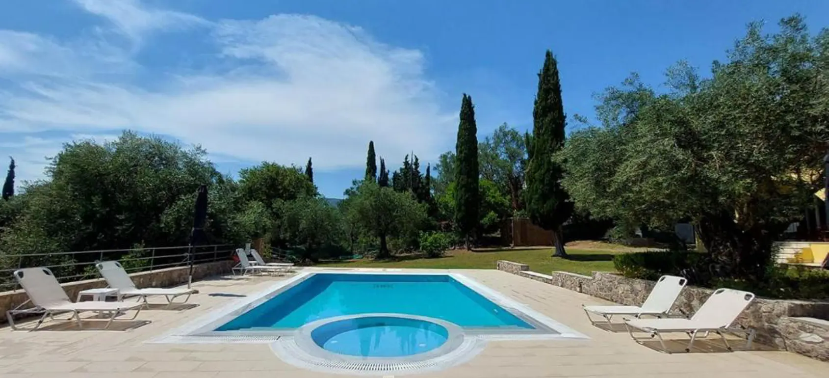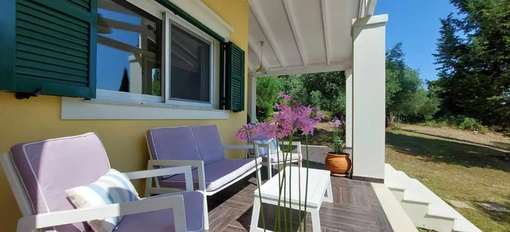 The villa is spread over two levels, while shaded verandas and relaxation areas embrace the property offering lovely views of the island.