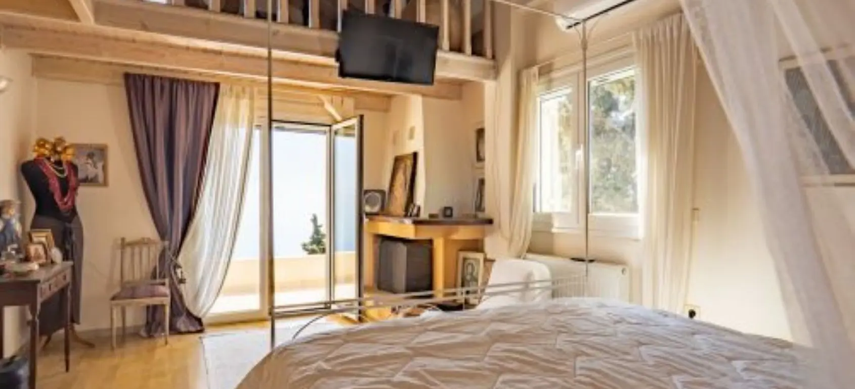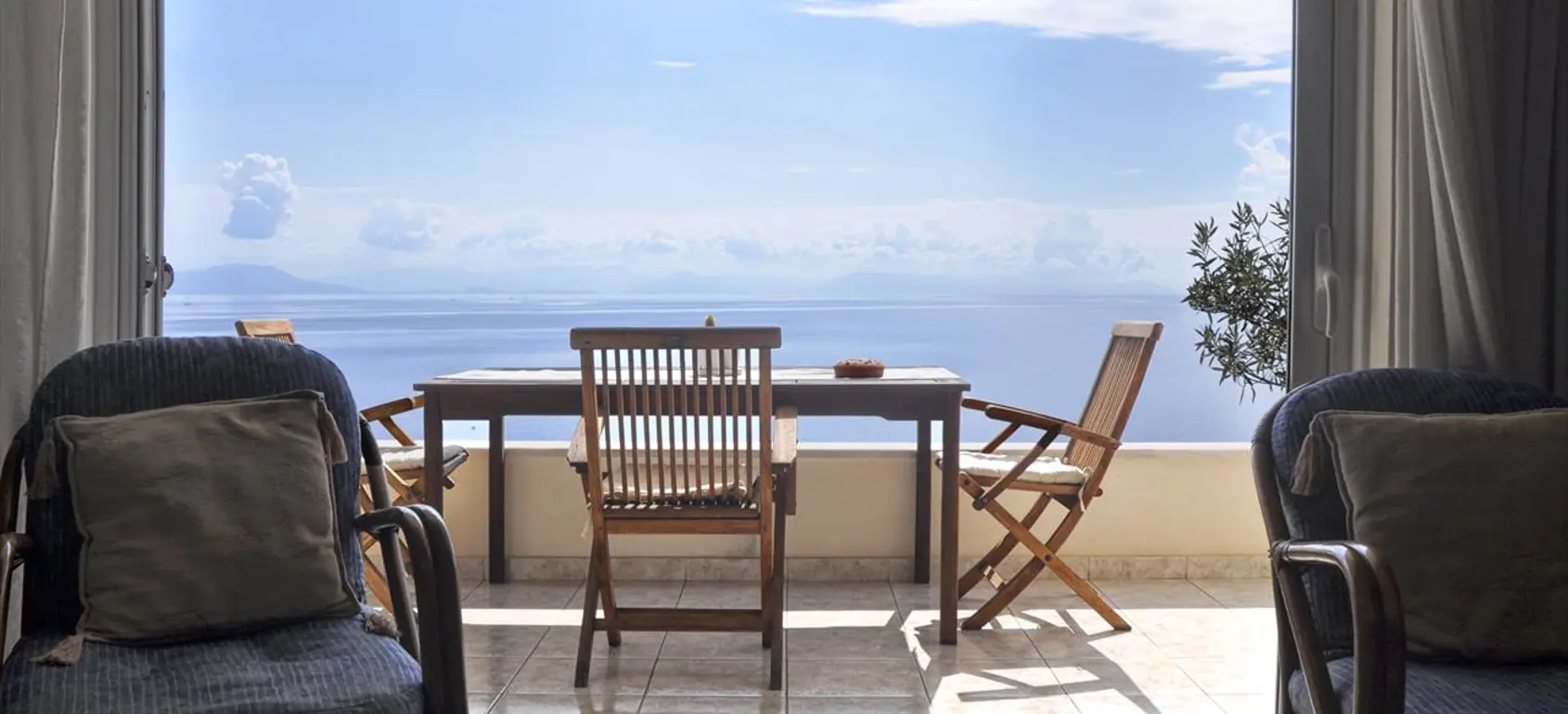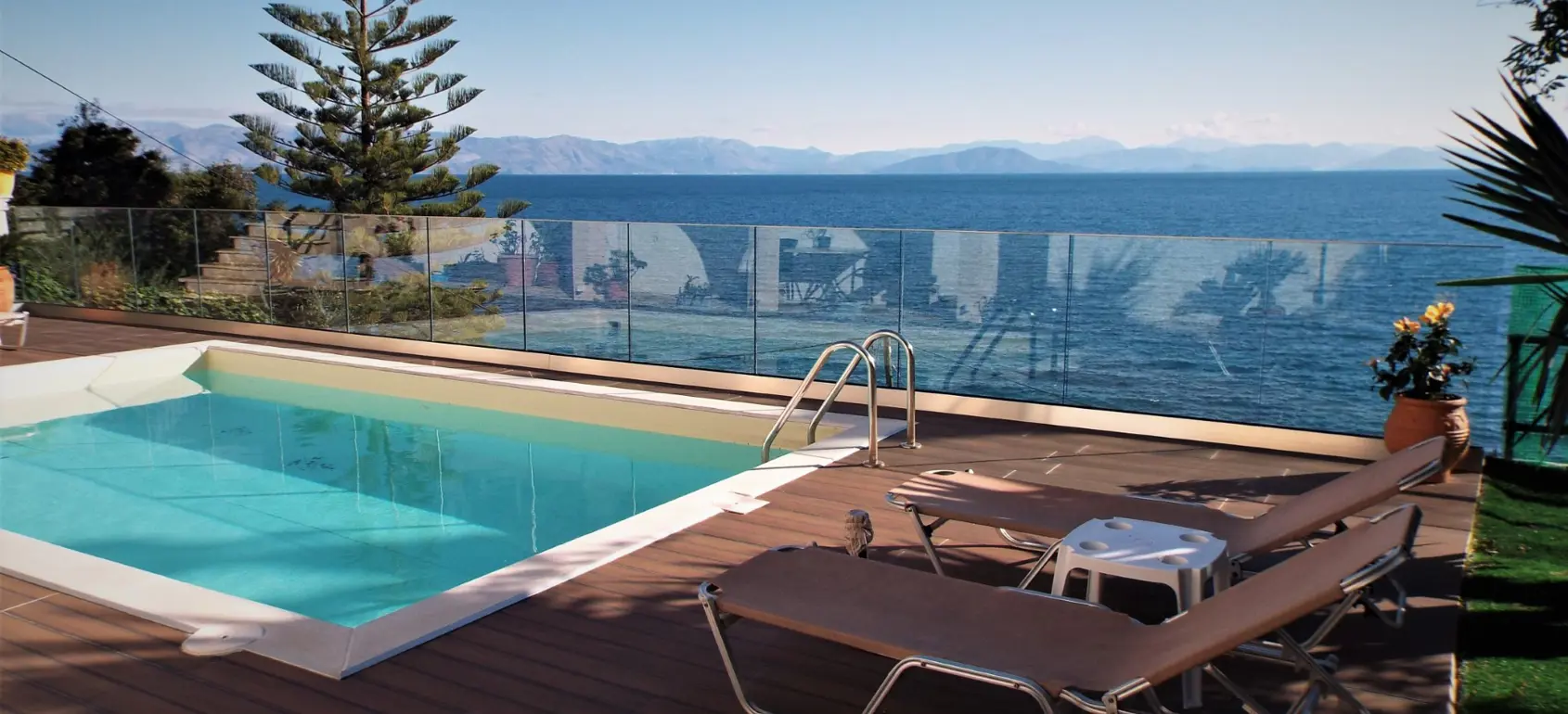 Ten minutes from the center of Corfu town, this villa was smartly designed taking advantage from the stunning sea and lush mountain vistas and the proximity to the beach.