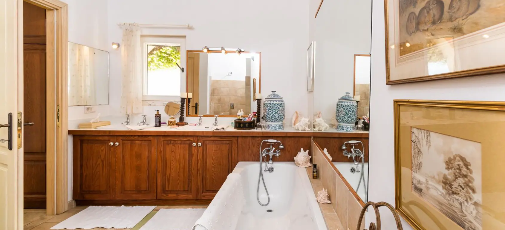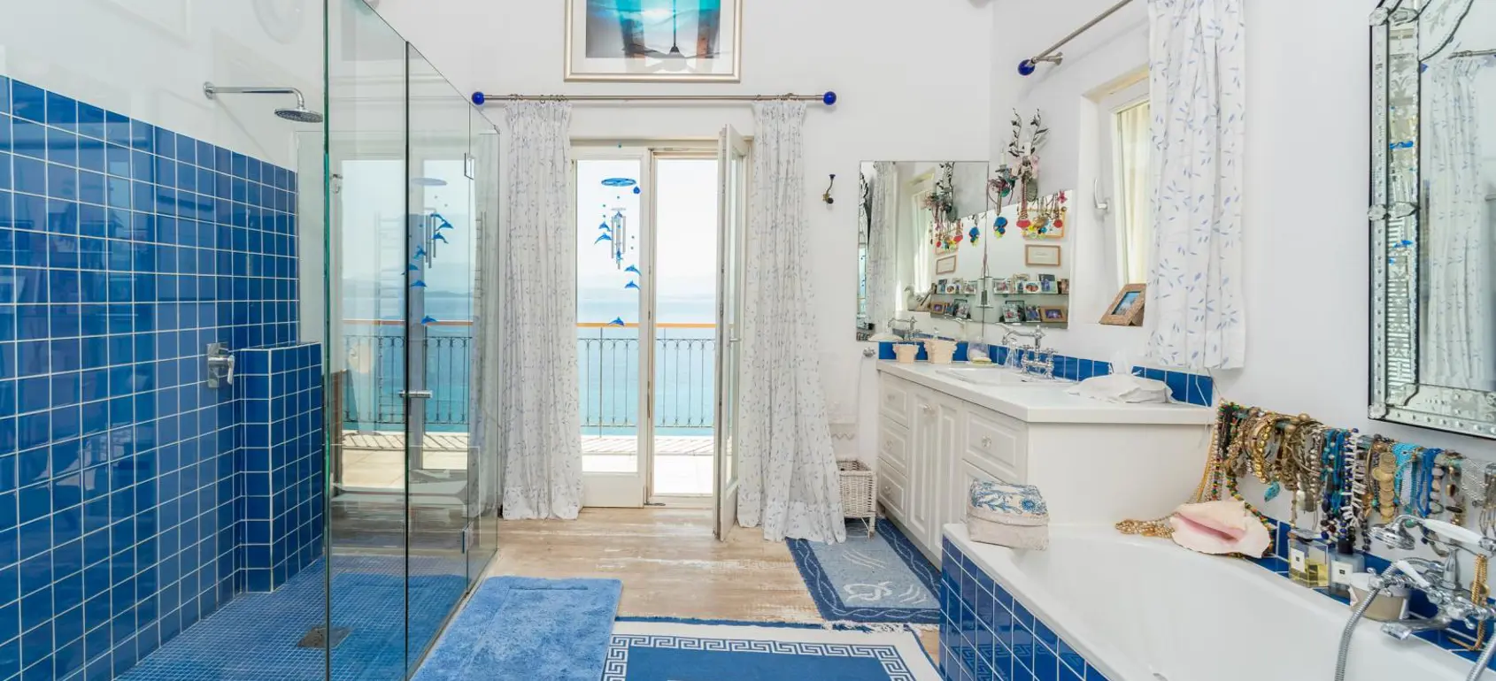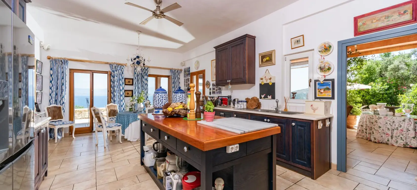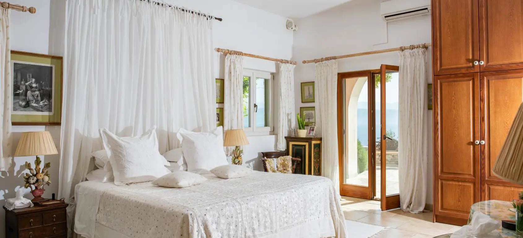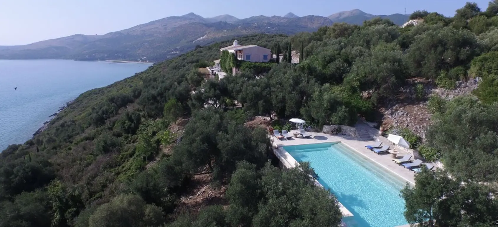 The villa stands on the northern corner of Corfu. Walled and secure, it is only a few minutes’ drive from the renowned and lively resorts of Kassiopi and Agios Stefanos. Surrounded by olive groves, all the rooms and many terraces overlook the sparkling waters of the Ionian Sea. Italian like style pervades the villa. There are extensive areas for entertaining and a spectacular dining area that adapts both to cool evenings and warm summer days. A glorious Mediterranean garden leads to the large and dazzling infinity swimming pool with its own terrace, separate dining area and pool house. On a small hill above the garden is a sunset terrace that overlooks the whole island.