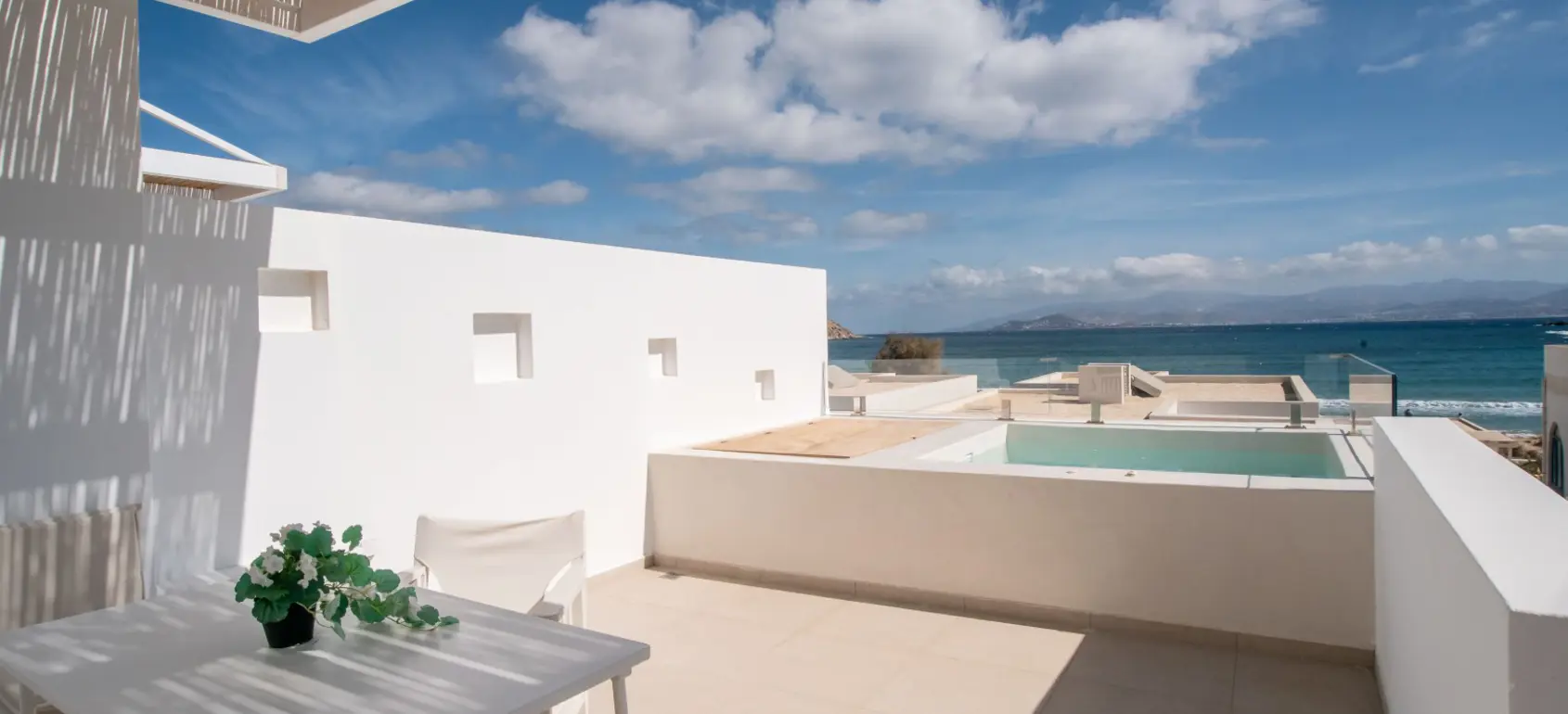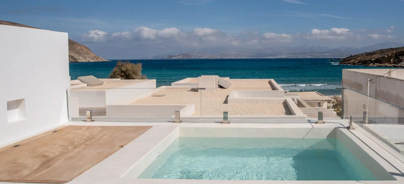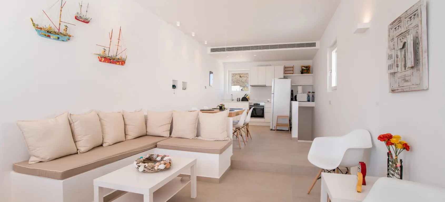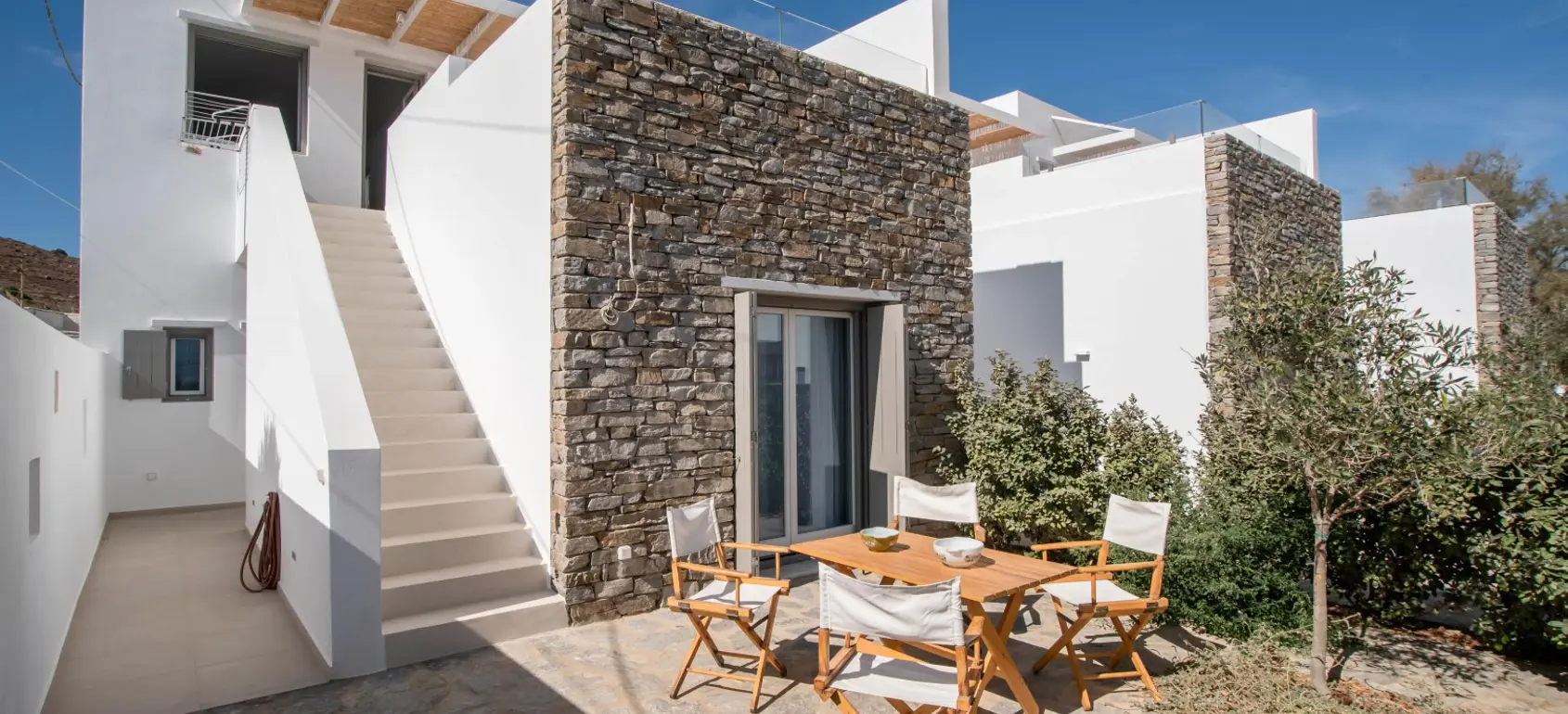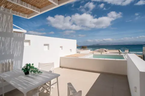 This is a newly-built two-bedroom maisonette, within a Cycladic style development situated at the fishing village of Molos, just steps from the beach.