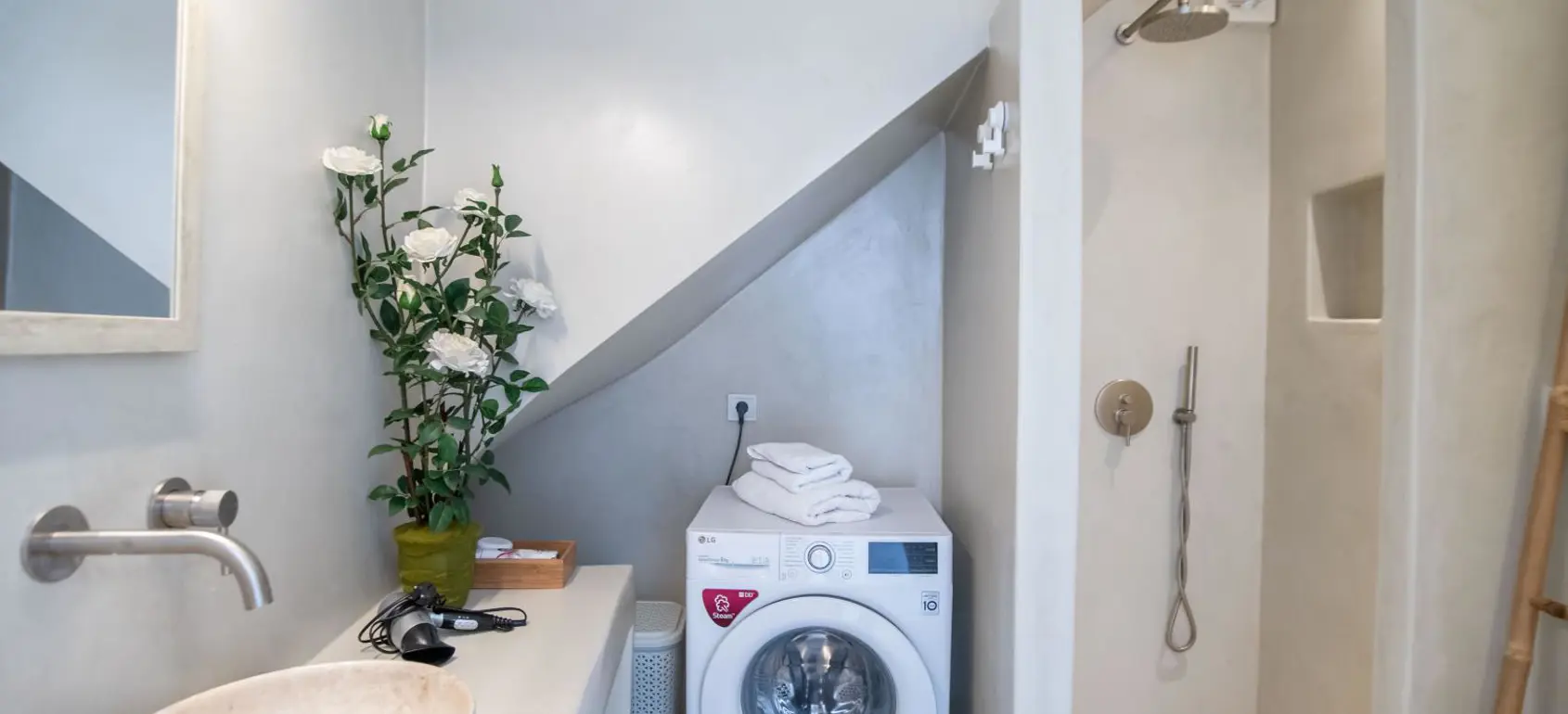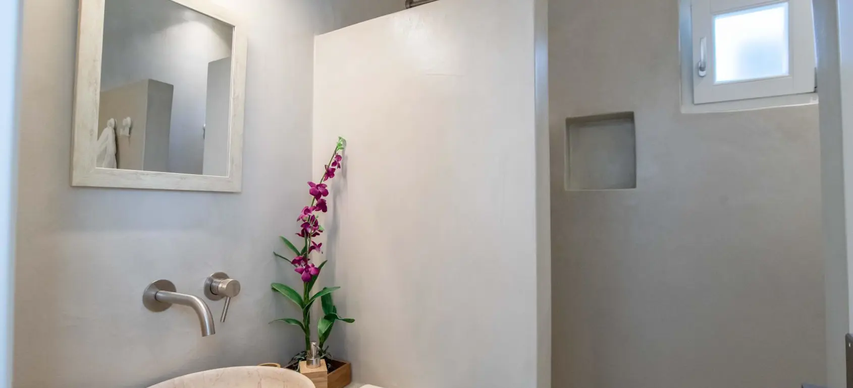 The house lies in two levels cleverly designed, so as to enjoy the best views from the living area and the jacuzzi in the outdoor area of the first floor, while the placement of bedrooms on the ground floor provides privacy and an extra outdoor sitting area.