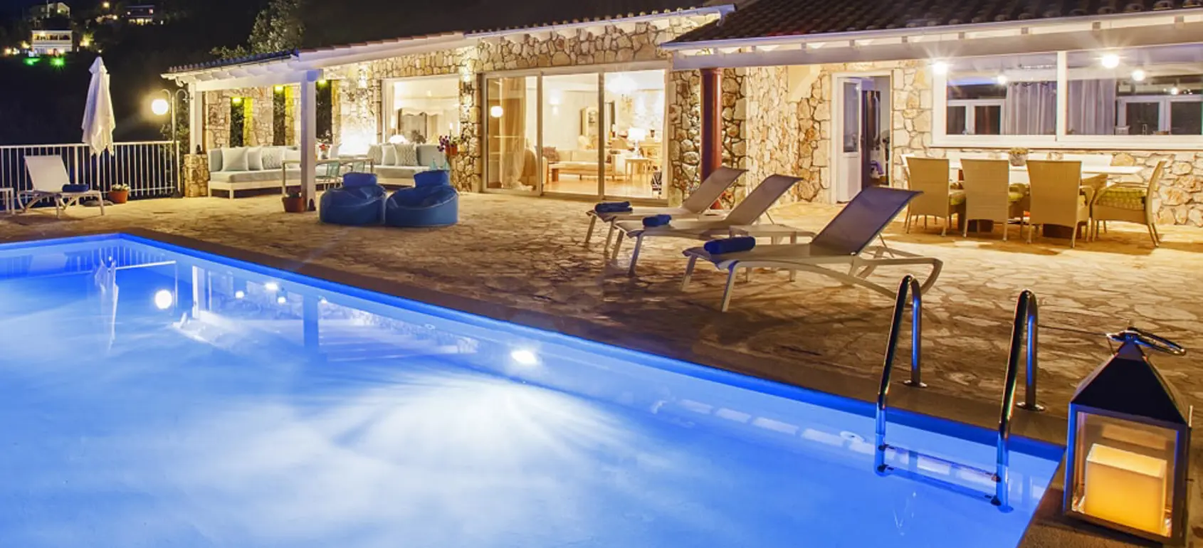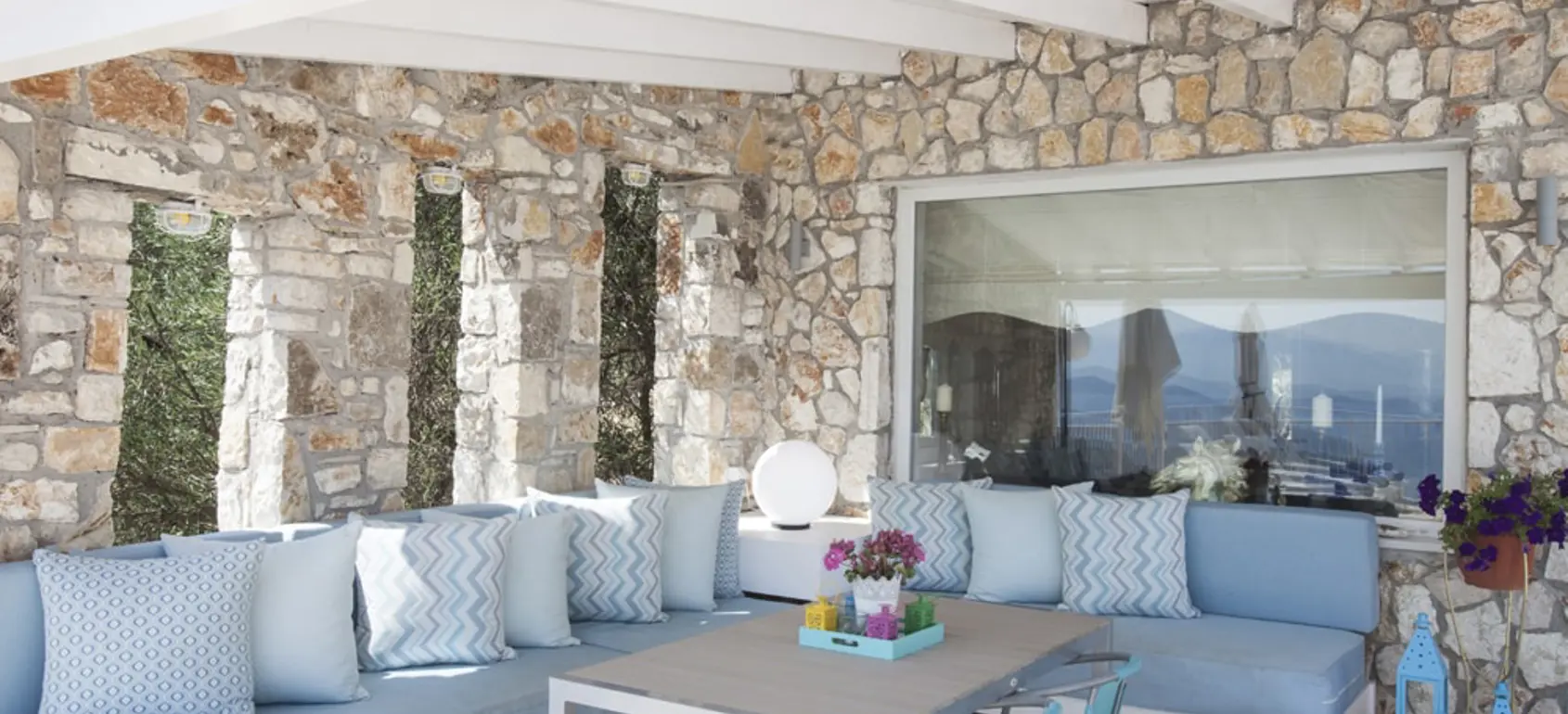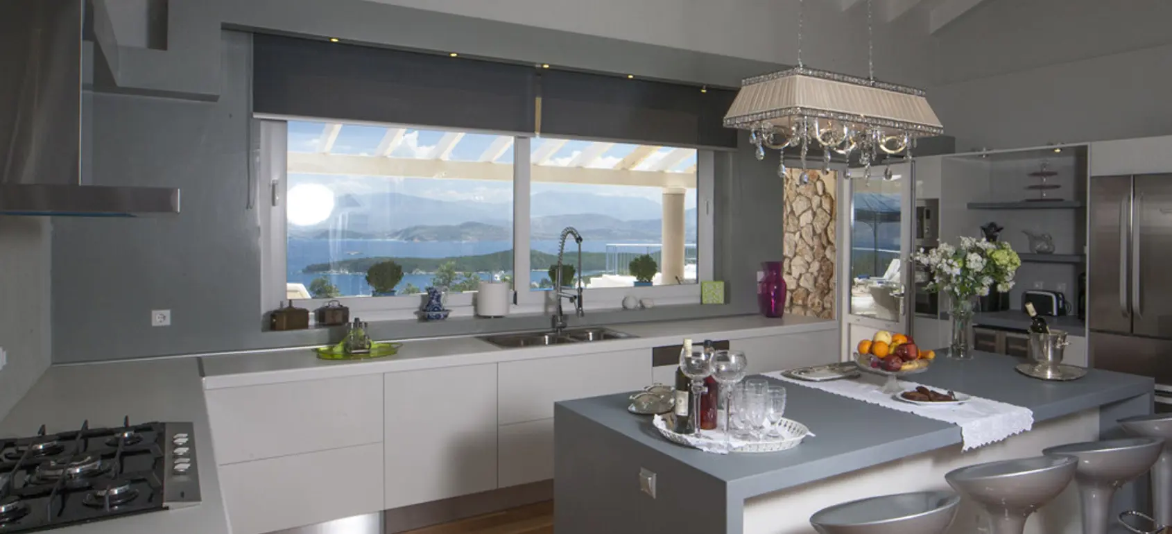 Set on a sloping plot full of greenery, this expansive four-bedroom villa overlooks Kassiopi area.