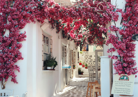 Naxos is the biggest and the greenest island in Cyclades with impressively high mountains, fertile valleys, lush green gorges, stunning seascapes and traditional villages perched high on mountain tops. Naxos is also an island of beautiful old churches, monasteries and Venetian castles coexisting harmoniously with Cycladic cubic houses. The island of Naxos is located at 5 hours from the port of Piraeus with the ferry, or at 3 ½ hours with a fast ferry.