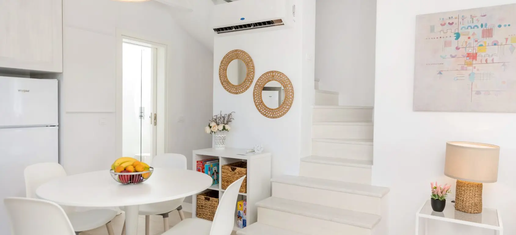 Within a newly built residential complex, constructed with Cycladic architectural elements, the specific residence is for sale.
