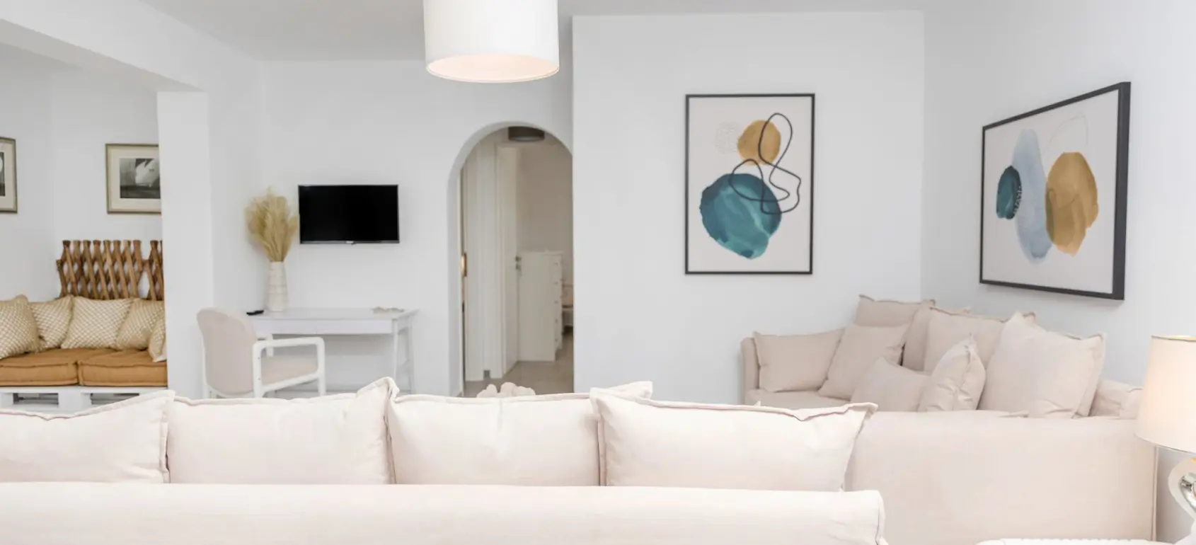 Within a newly built residential complex, constructed with Cycladic architectural elements, the specific residence is for sale. The residence, lying in three levels, comprises of 5 bedrooms in total, while its decoration is a mix of traditional and contemporary. From the outdoor areas one can enjoy panoramic sea views, while its garden secures happy friends and family summer days.