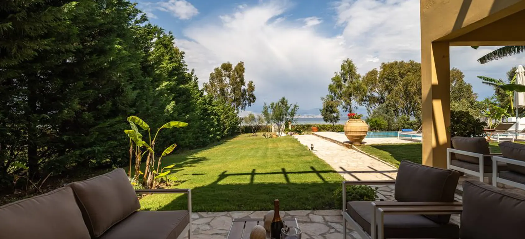 The villa is situated just steps from the water and it provides a private swimming pool and amazing sea views.