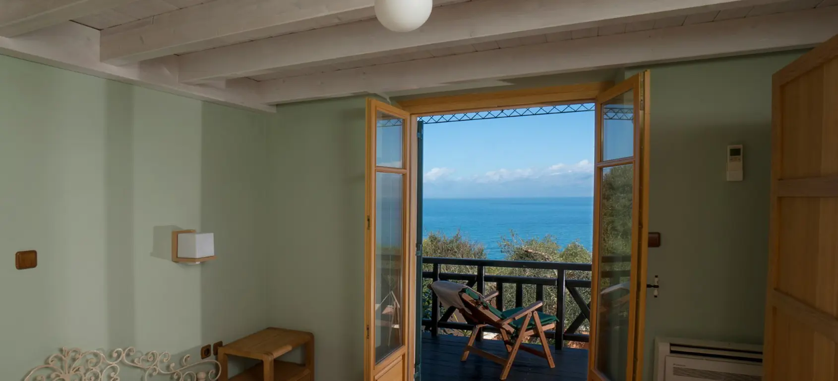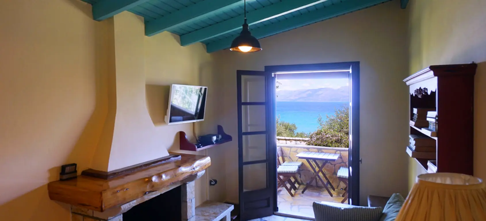 Outdoors, the property provides a pergola-shaded lounge, built-in BBQ, and private parking, all surrounded by lush greenery and panoramic views. A private path leads directly to the beach, just 50 meters away, making it easy to enjoy the crystal-clear waters of the Ionian Sea.