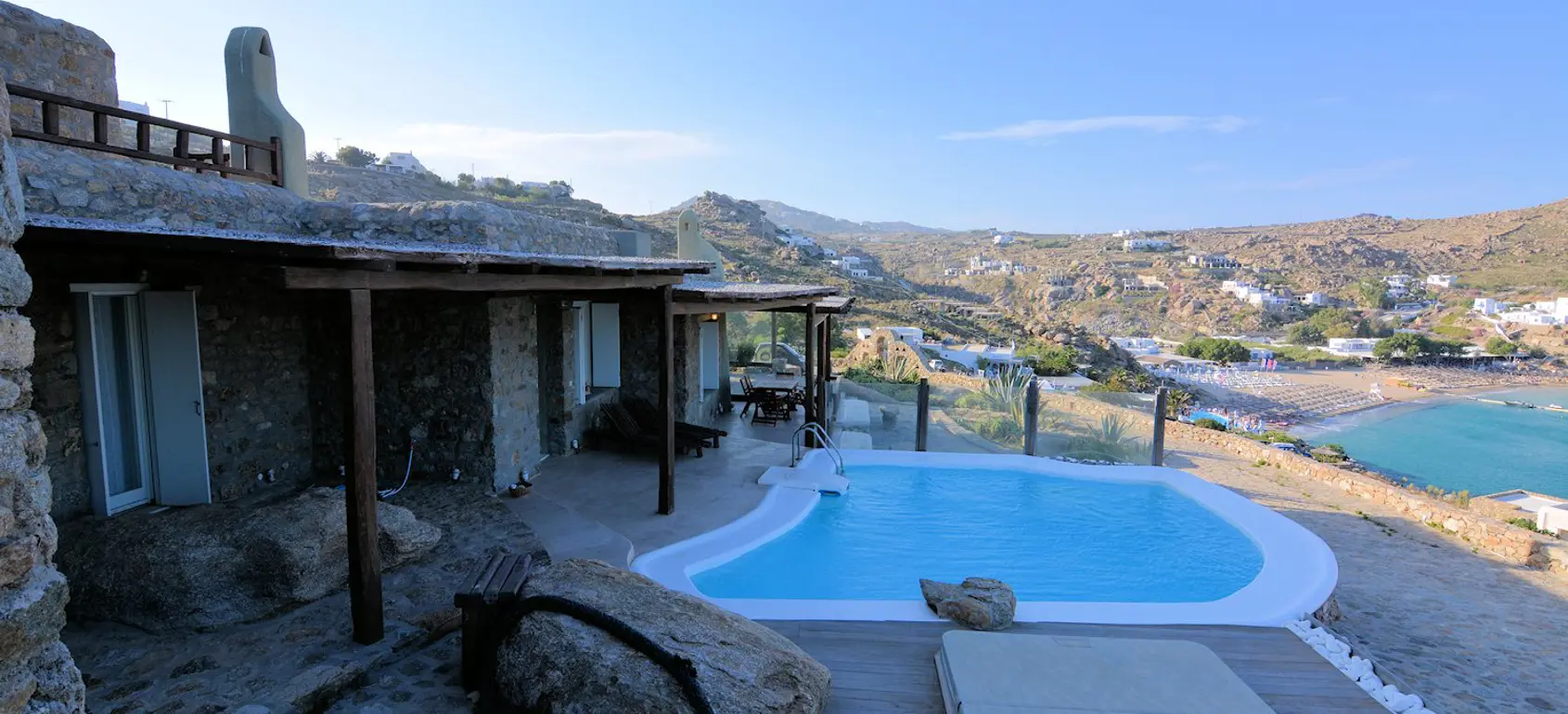This stone villa, which was built according to the traditional Cycladic architecture, is located very close to Super Paradise beach.