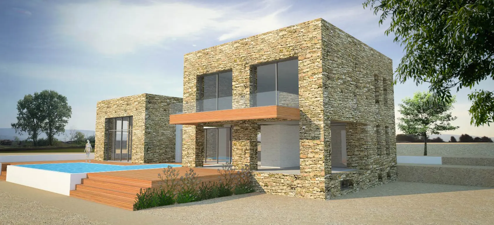 A valid building permit is already in place, accompanied by approved architectural plans for a 300-square-meter residence featuring a swimming pool.