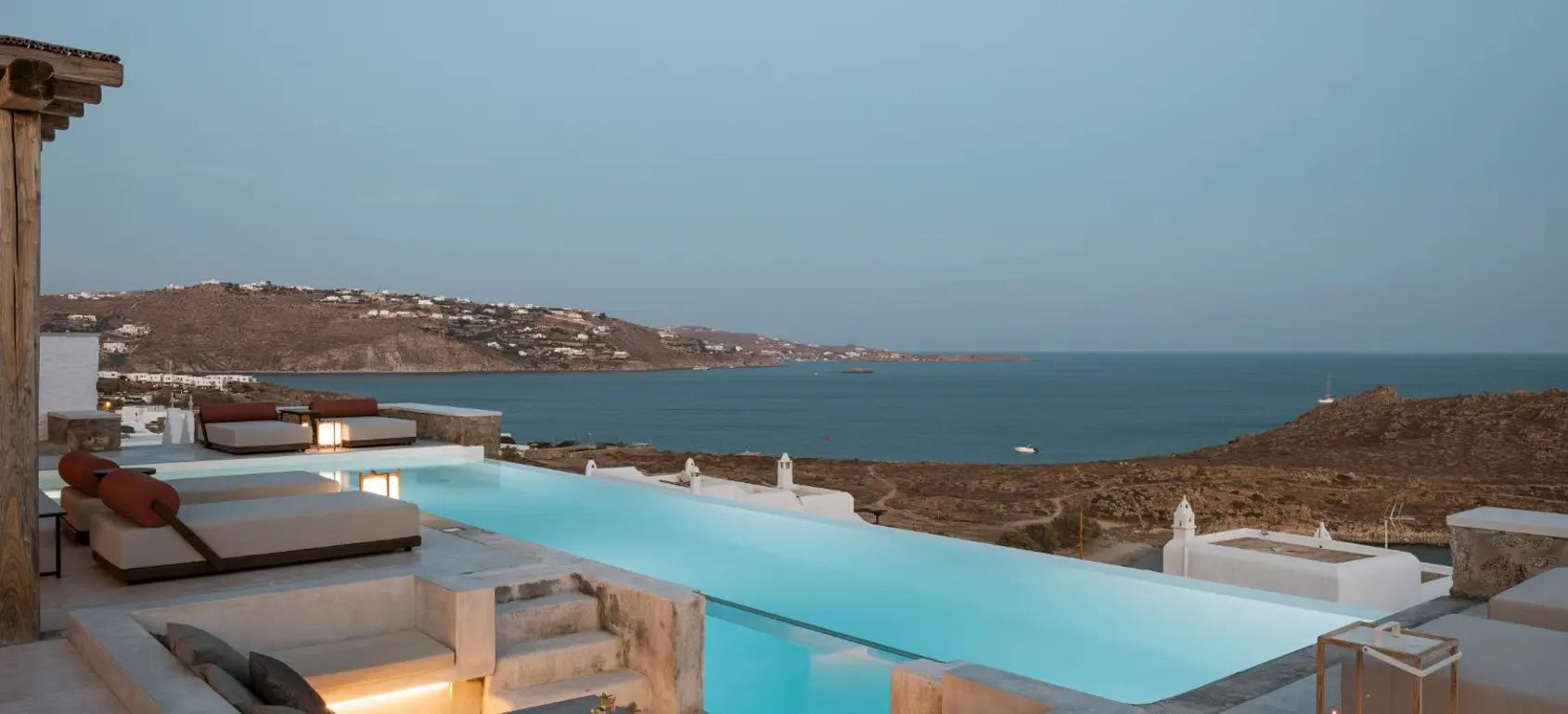 Beautiful villa overlooking Mykonos Island and Aegean Sea