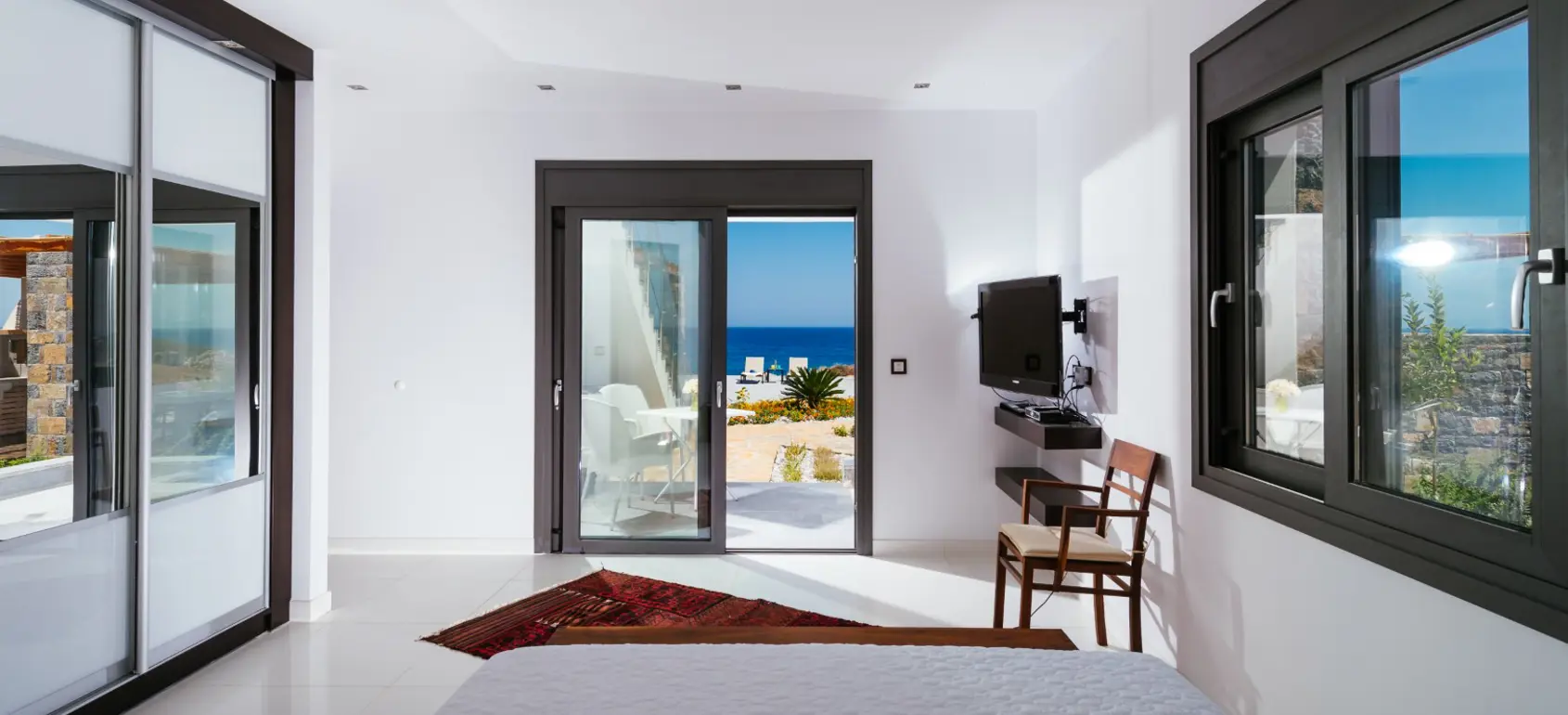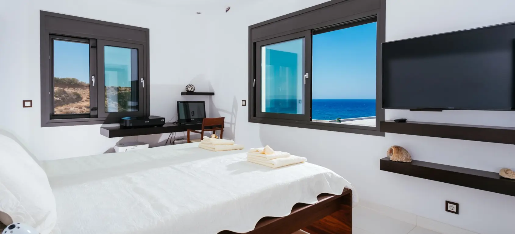 The property sits in a secluded position at the end of a quiet street. Passing through the entrance, the main area is revealed, a vast living/dining/kitchen space of 90sqm. Four en-suite bedrooms complete the ground floor living space. The lower level is occupied by two more bedrooms sharing one bathroom. Wonderful, uninterrupted views to the sea are provided from every room of the house.