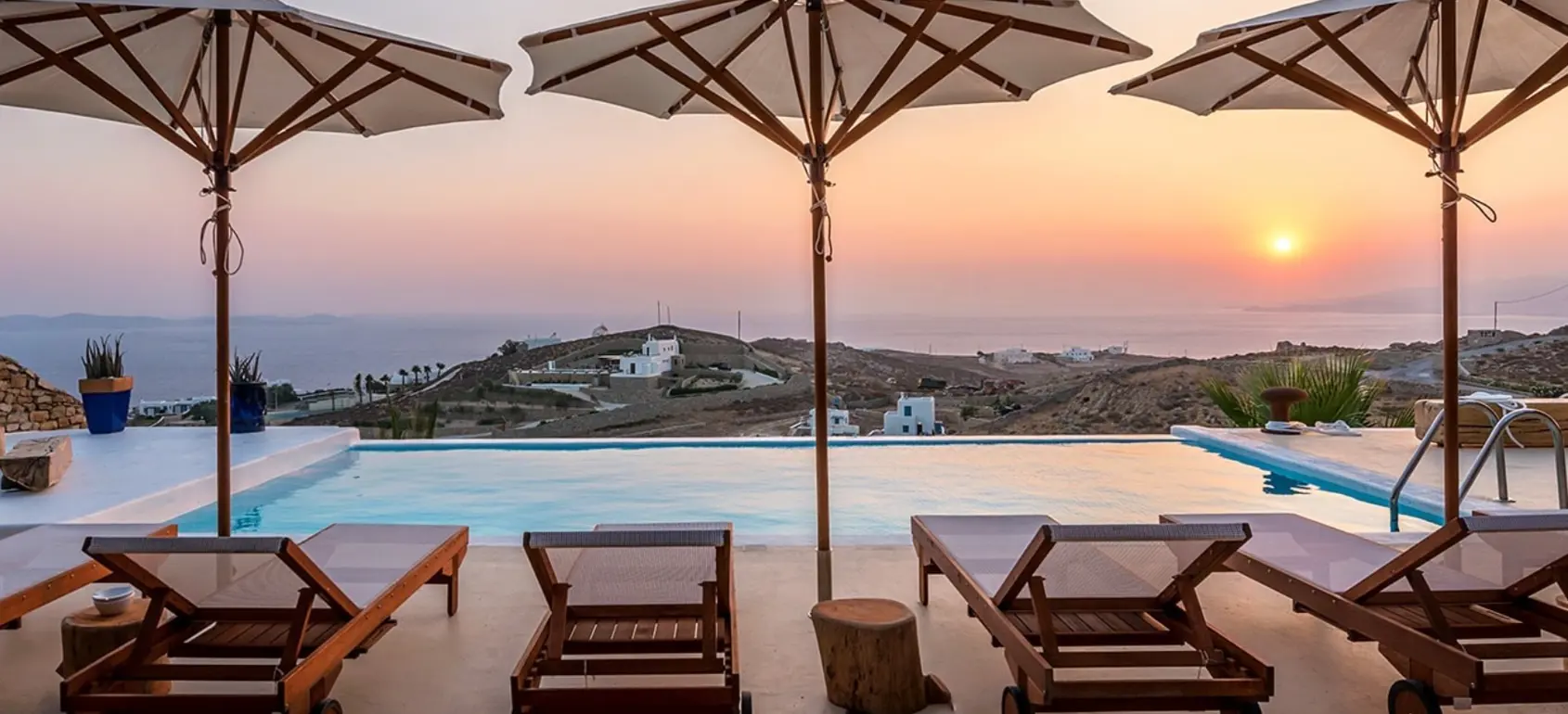 Beautiful villa overlooking Mykonos Island and Aegean Sea