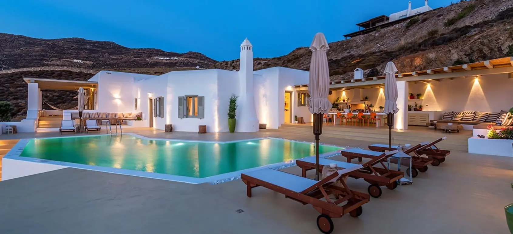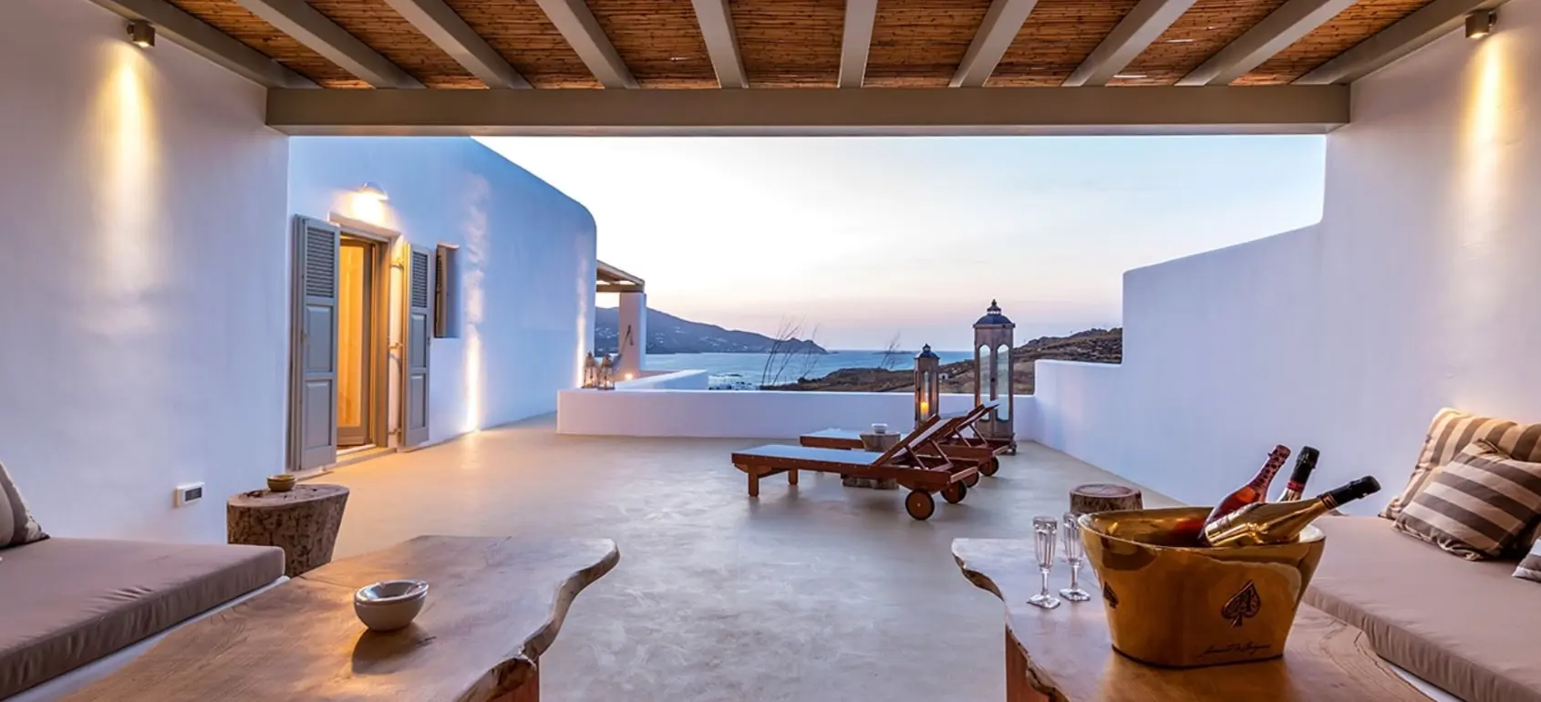 Beautiful villa overlooking Mykonos Island and Aegean Sea