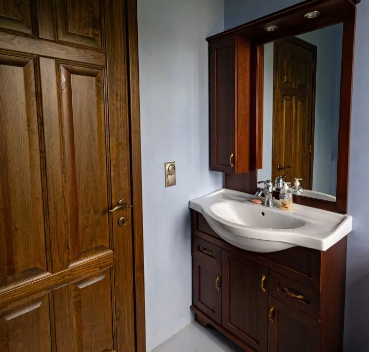Outside, there is an ample living/dining area along with a swimming pool which offers sea view. Access to the property is gained via a garden lined with mature trees.