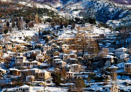 The Pelion peninsula is situated geographically on the eastern side of Central Greece with a maximum altitude of 1,550m. Pelion is known as the garden of Greece and the mountain of the Centaurs. On the west side picturesque villages are set between shimmering olive groves, whereas on the east dense forests alternate with lush and carefully created terraced fruit orchards. The many waterways find their ways through waterfalls and gorges to meet the see in little bays with sandy beaches. Pelion’s landscapes are ideal for visitors who want to explore its natural beauty on foot. There are many old stone paths and interesting trails which connect the mountain villages with the tiny settlements at the seaside. Pelion is an ideal location for all-year round vacation, as it combines one of the most visited ski-centers in Greece with amazing natural reserves and kilometres of sandy beaches.