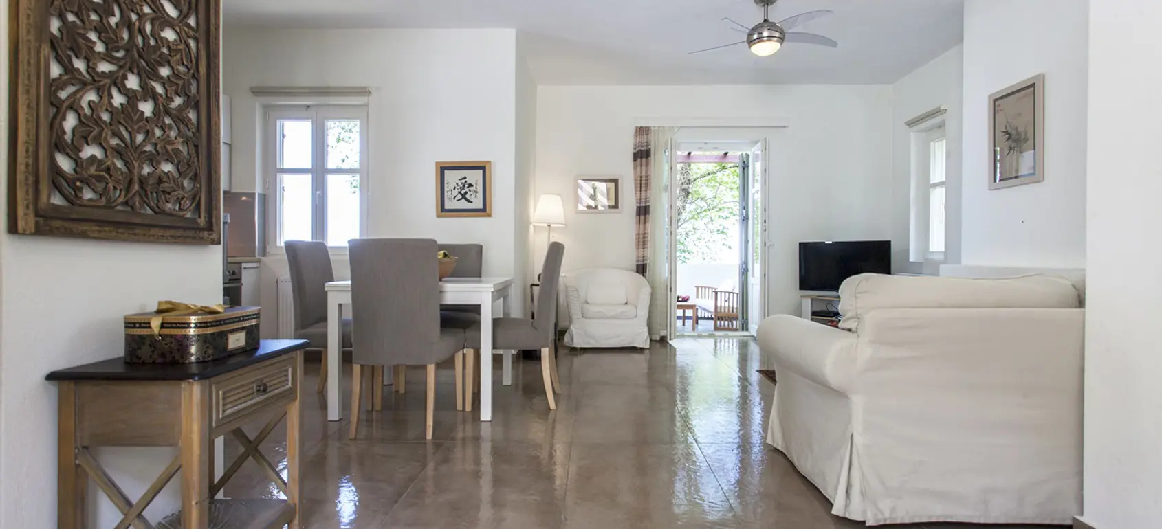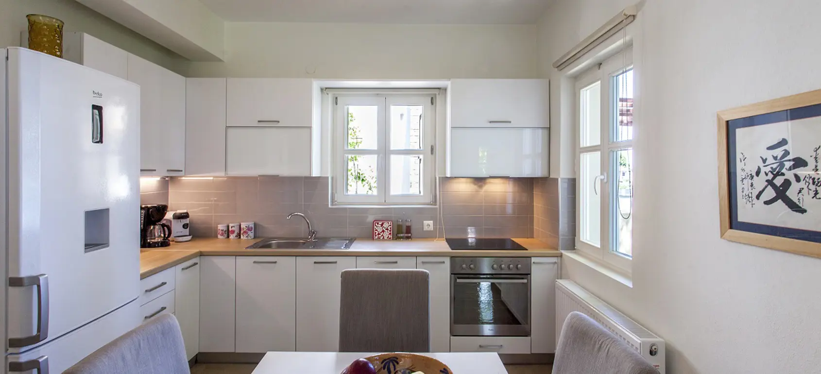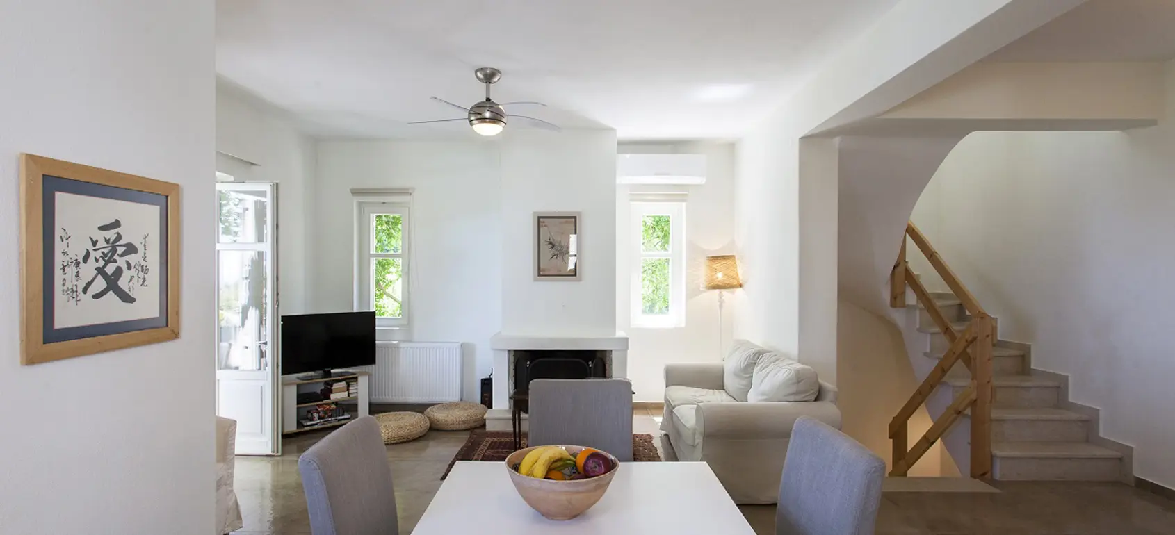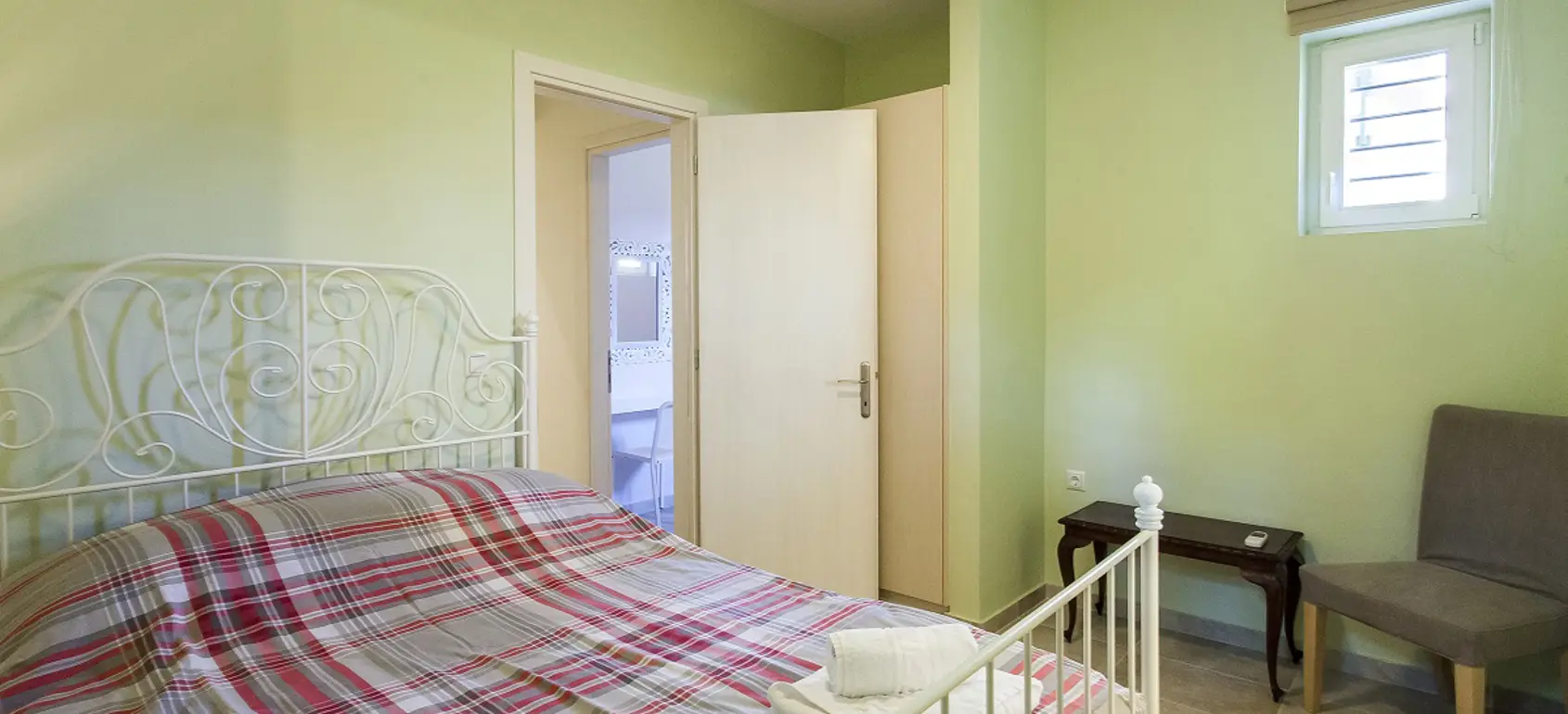 Entering the house there is the kitchen with the living and dining area and a balcony to relax and enjoy the calmness and the beauty of your holidays. On the first floor there are two bedrooms with en suite bathrooms, while on the attic level there is one more bedroom with its private bathroom and a balcony offering amazing views to the Aegean Sea. From the house you can have access to the common swimming pool area.
