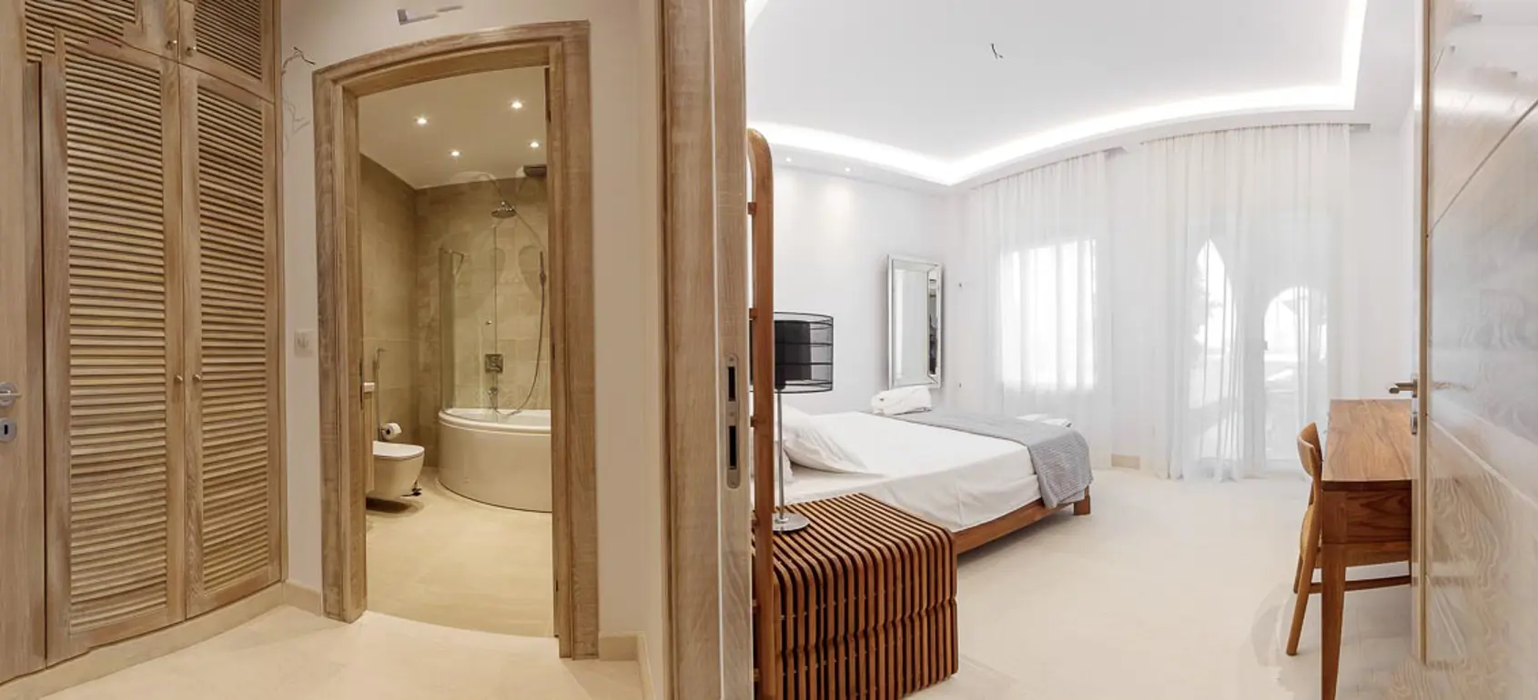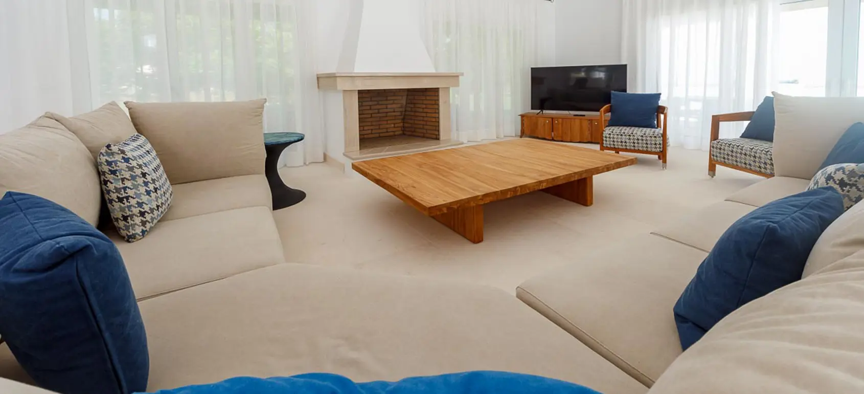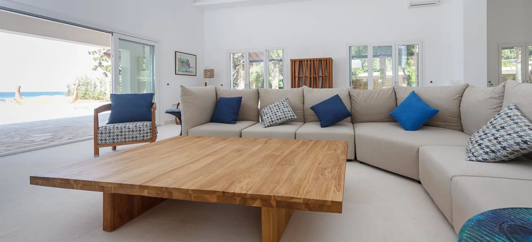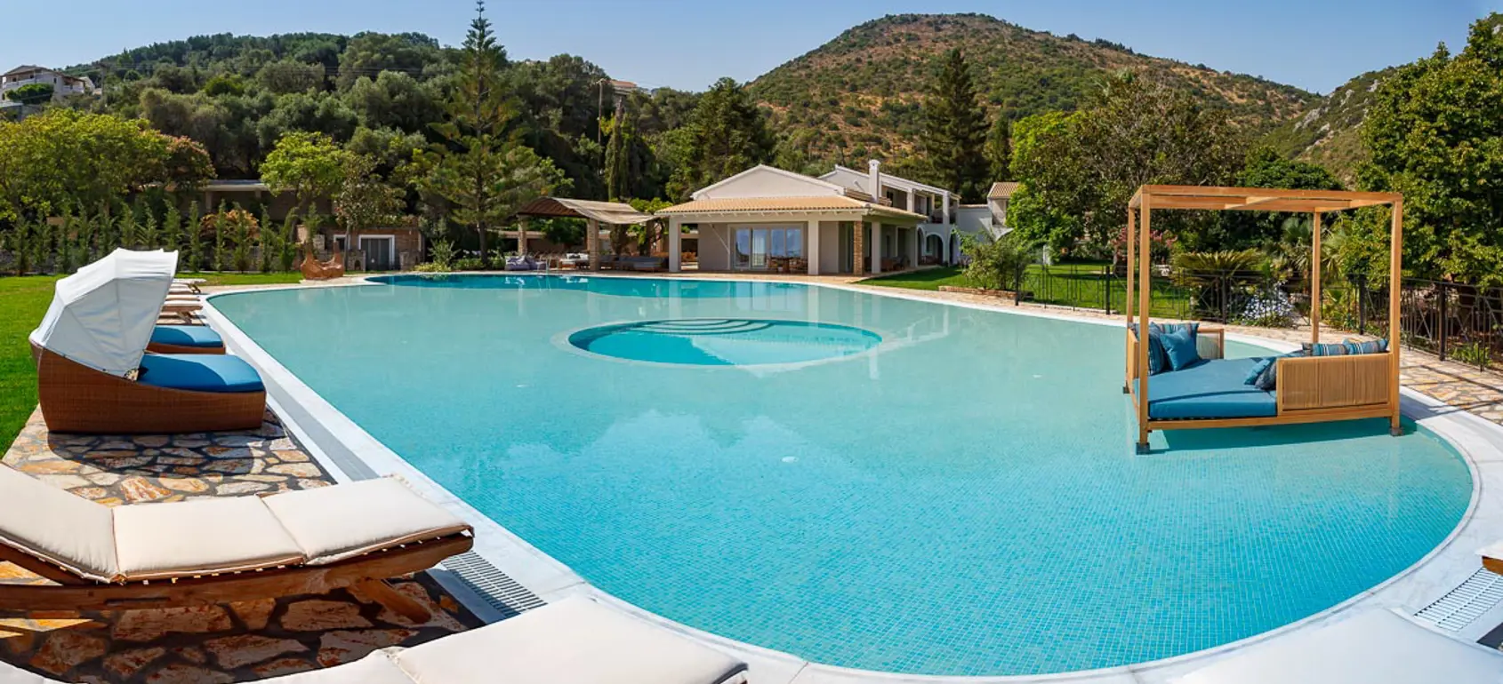 The pool area is the reference point of the property, and it lies between the seafront and the living room. The pool has a total water surface of 350 sqm, enough for both kids as well as adults to play, relax and enjoy the sun.