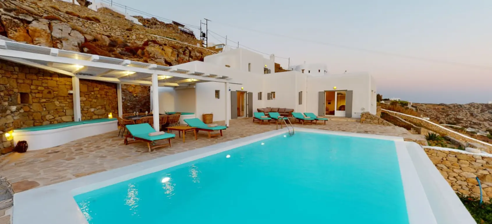 Beautiful villa overlooking Mykonos Island and Aegean Sea