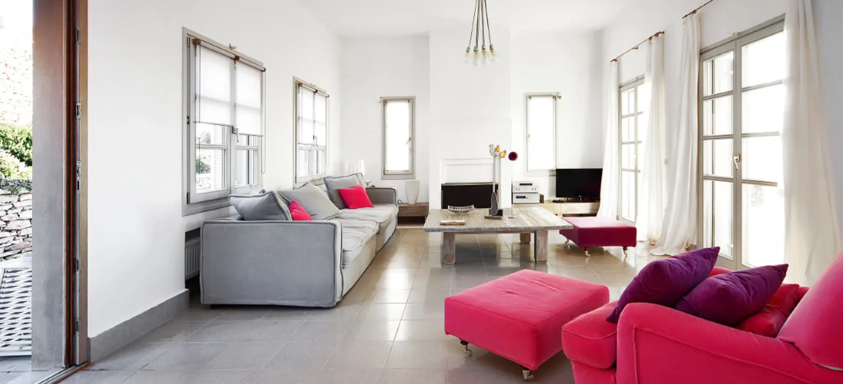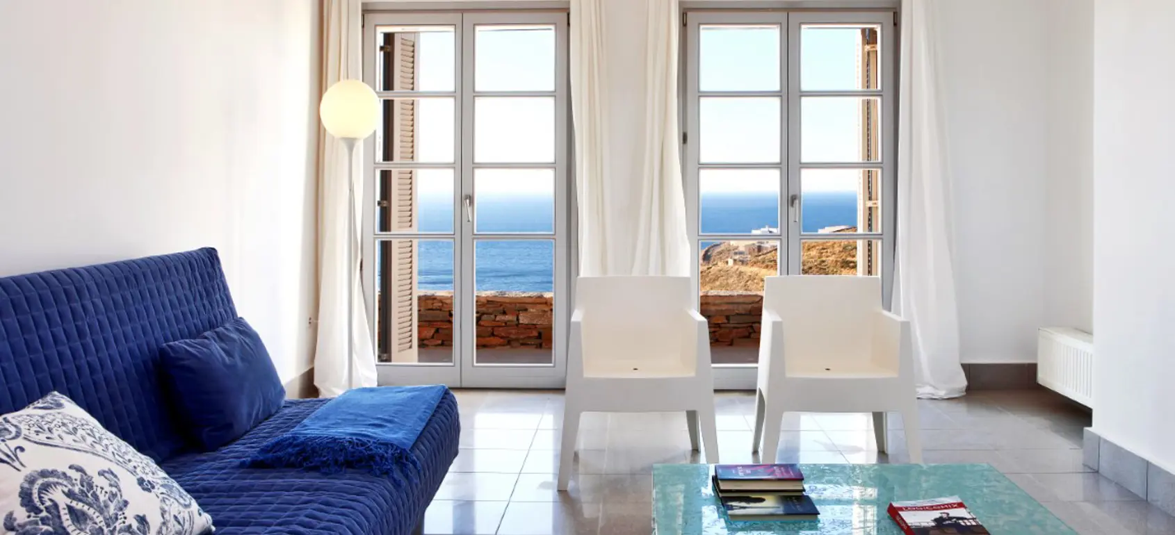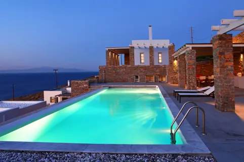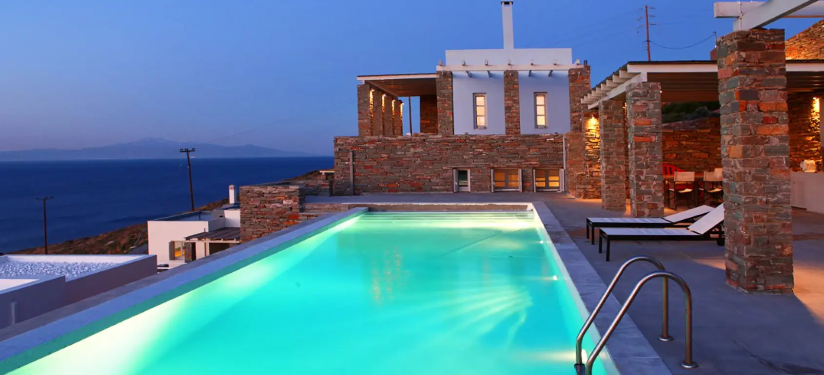 Nestled in one of the island’s most amphitheatrical locations, this villa boasts sweeping panoramic views of the Aegean Sea. Constructed using traditional stone craftsmanship, it harmoniously blends the timeless charm of the island with modern luxury and comfort. Throughout its many inviting corners, guests are sure to enjoy moments of serene summer relaxation while gazing out over the sea.