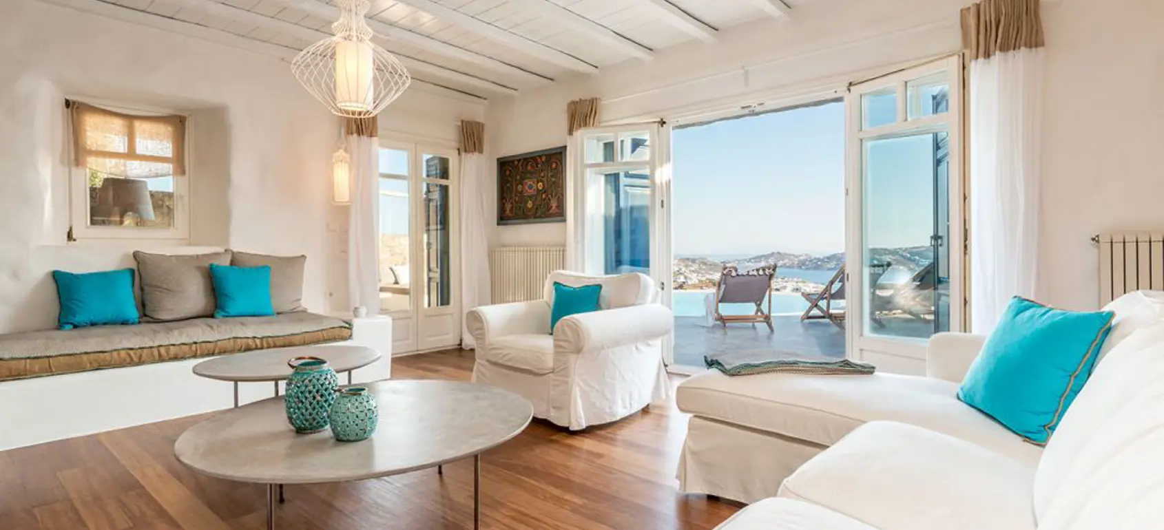 Beautiful villa overlooking Mykonos Island and Aegean Sea