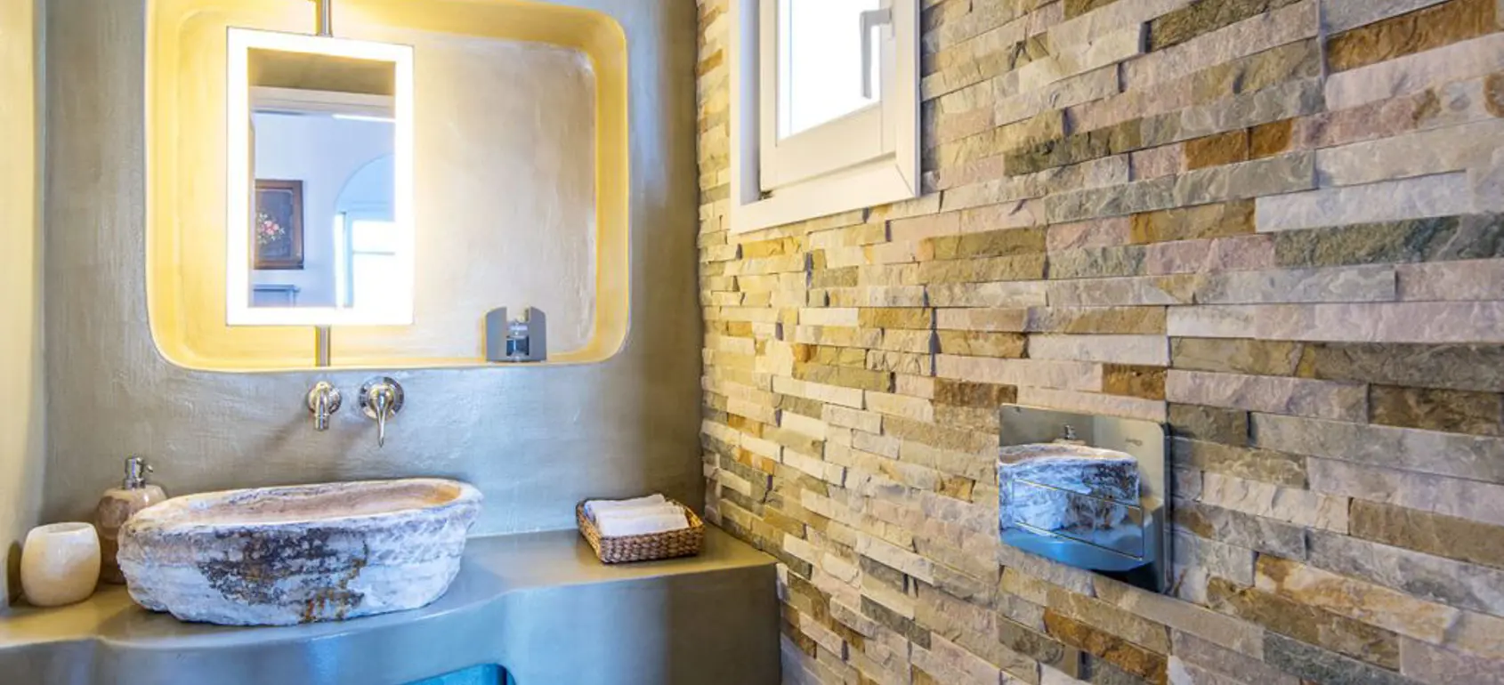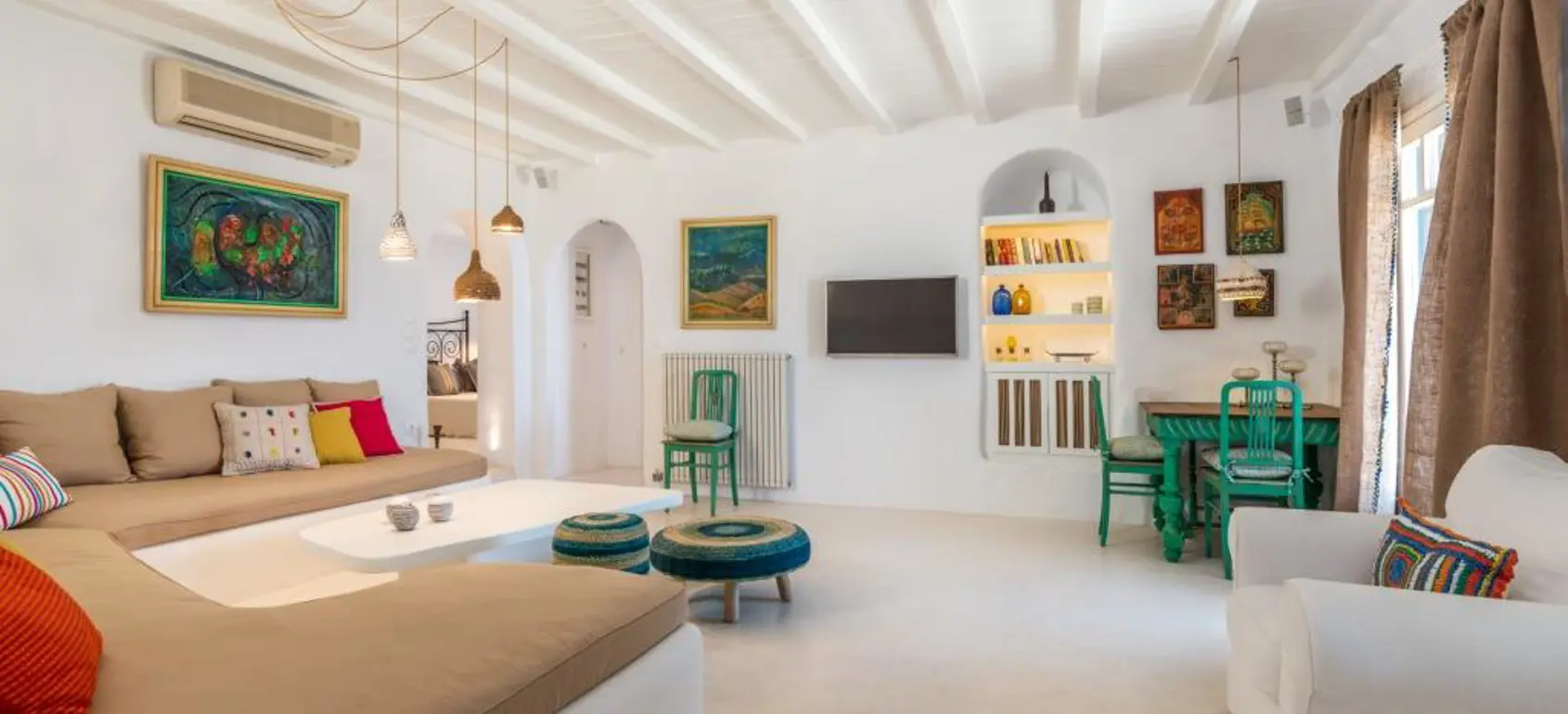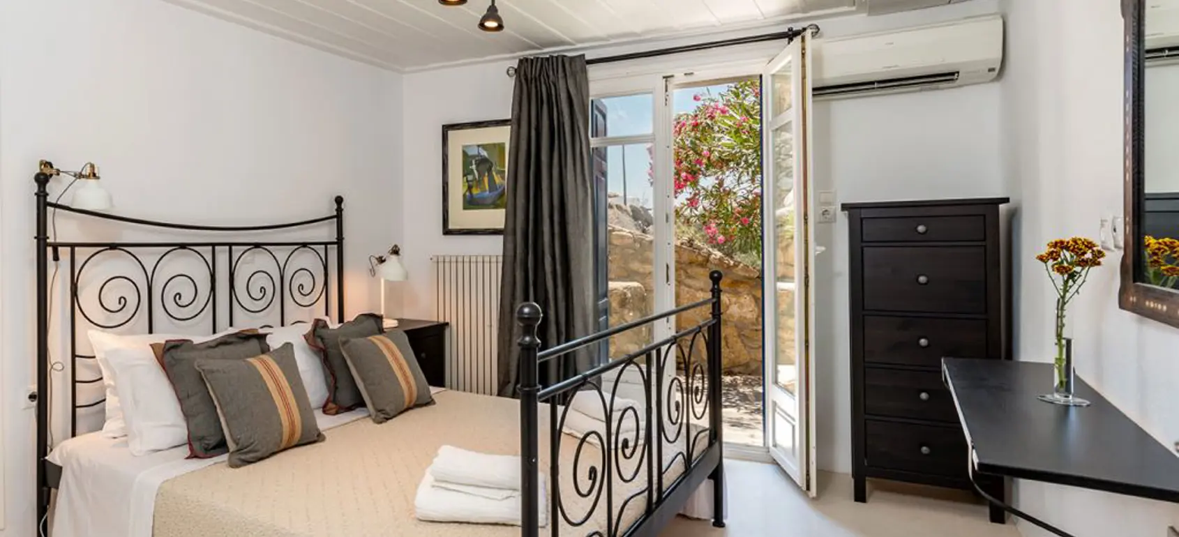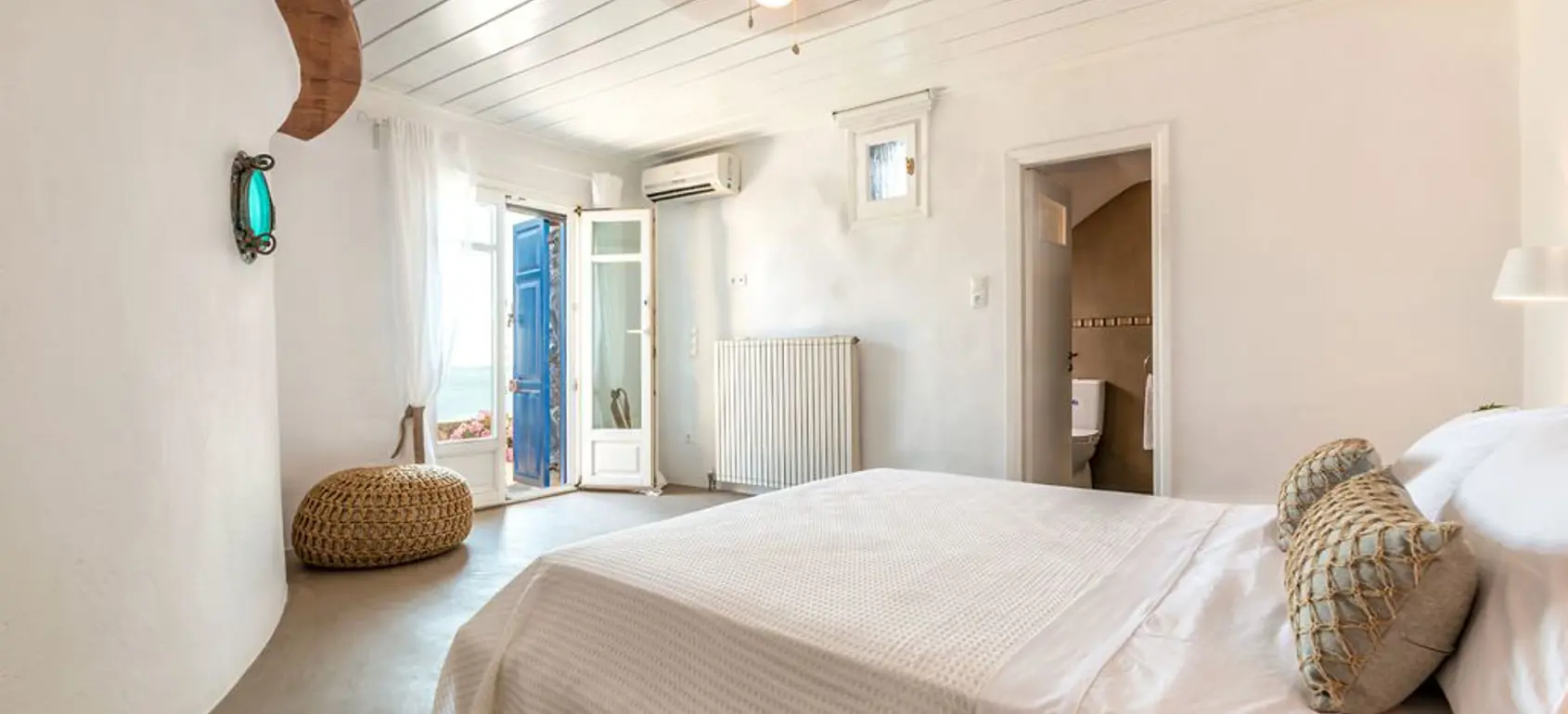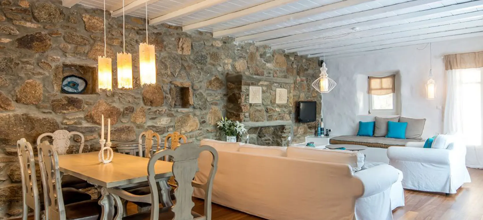 The property consists of two detached houses and offers to guests full privacy. It is also facing south offering breathtaking sunset views over the island of Delos and the Aegean Sea.