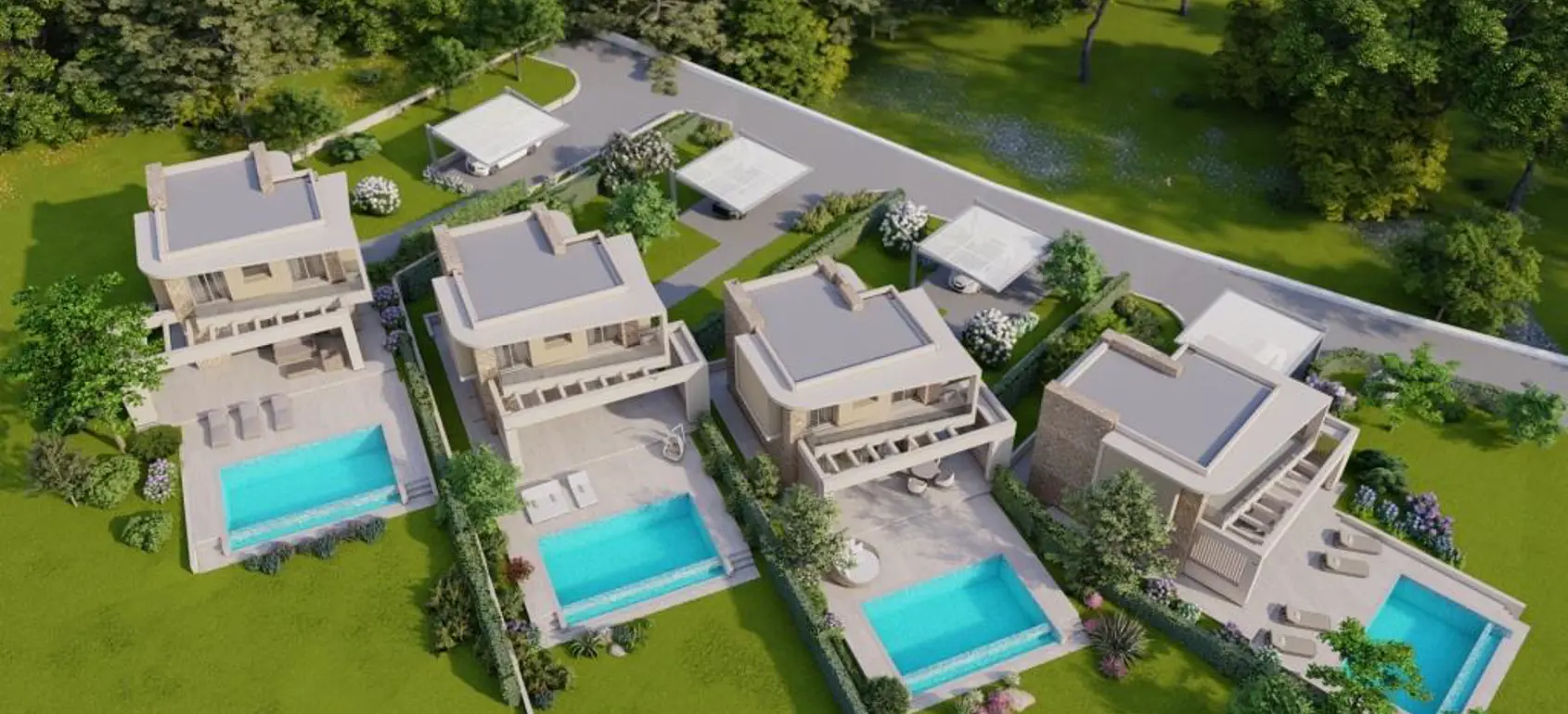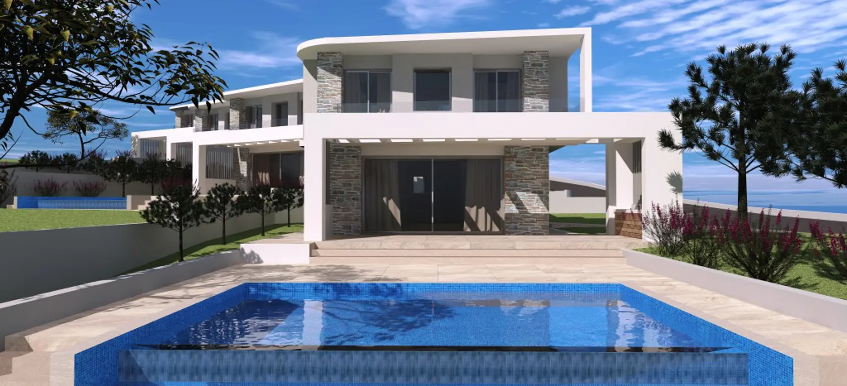 In a residential complex of four newly built luxury villas, with exclusive swimming pools and great sea views in Chanioti village, in Kassandra Halkidiki, this villa is offered for sale.