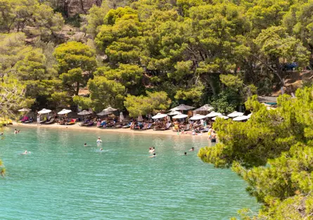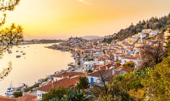 Poros Island belongs to the islands of the Saronic Gulf and is located very close to Athens. Lush pine trees vegetation, crystal clear beaches, a lively waterfront adorned with shops, cosy cafes and restaurants, a picturesque capital (it has been declared protected settlement) with grand traditional mansions and picturesque cobbled streets, as well as a wide selection of entertainment venues are the ingredients of this quiet, yet cosmopolitan, destination that attracts visitors from all age groups. Access from Athens is very frequent by Ferry or Hydrofoil from Piraeus (Ferry boat: 2 ½ hours and Hydrofoil: 1 hour). By car, Poros is located at an easy 2-hour drive from Athens (170km) to Galata and 10-minute ferry crossing (every half an hour).