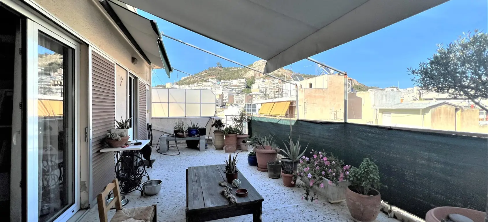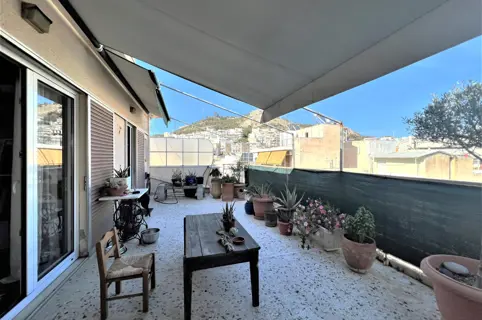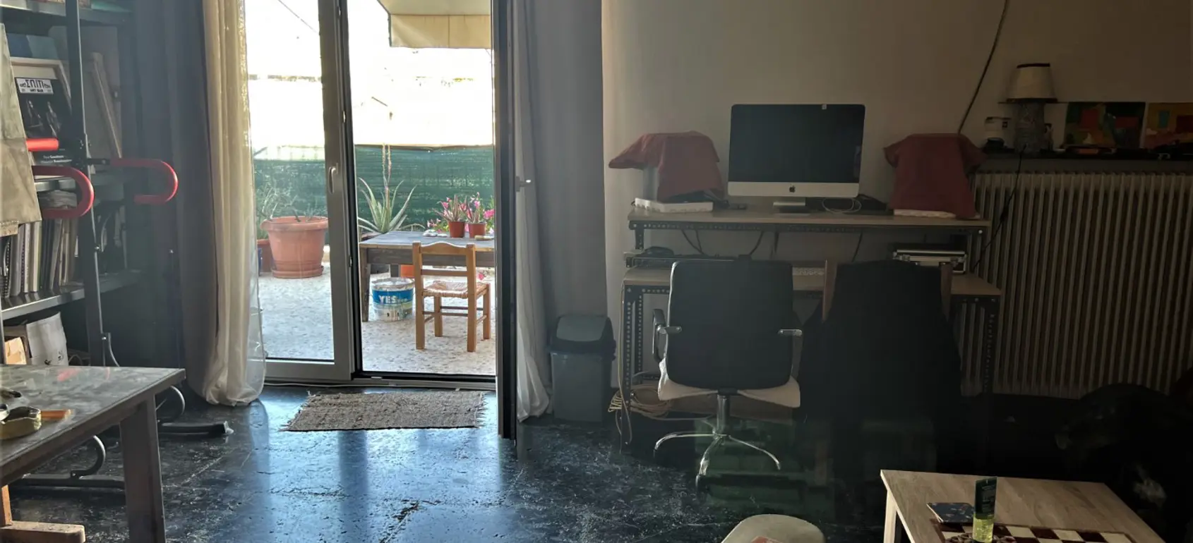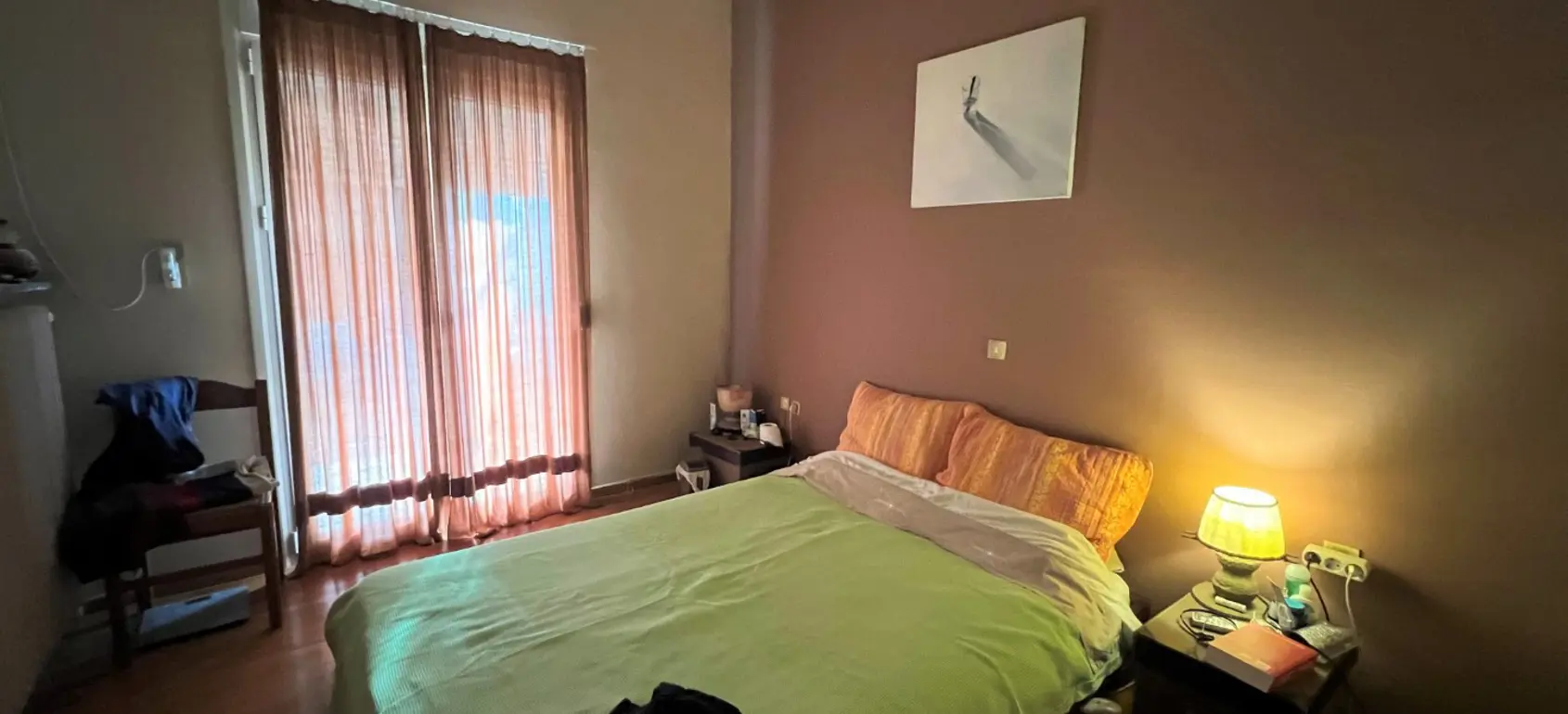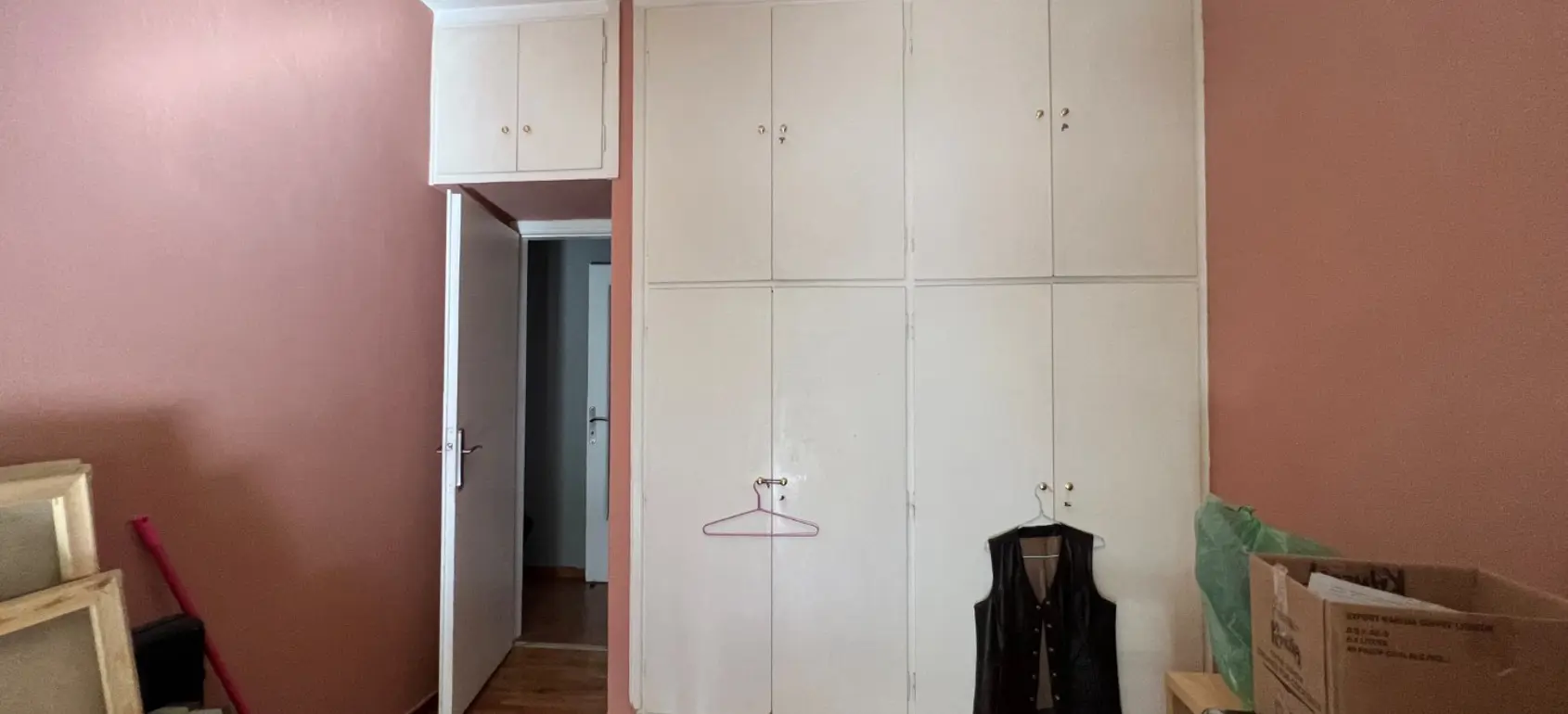 The luminous apartment of 90 sq.m comprises a living room, a big kitchen, 2 bedrooms and two bathrooms. It stands close to the future “Dikastiria” metro station, and in close distance to the local market.