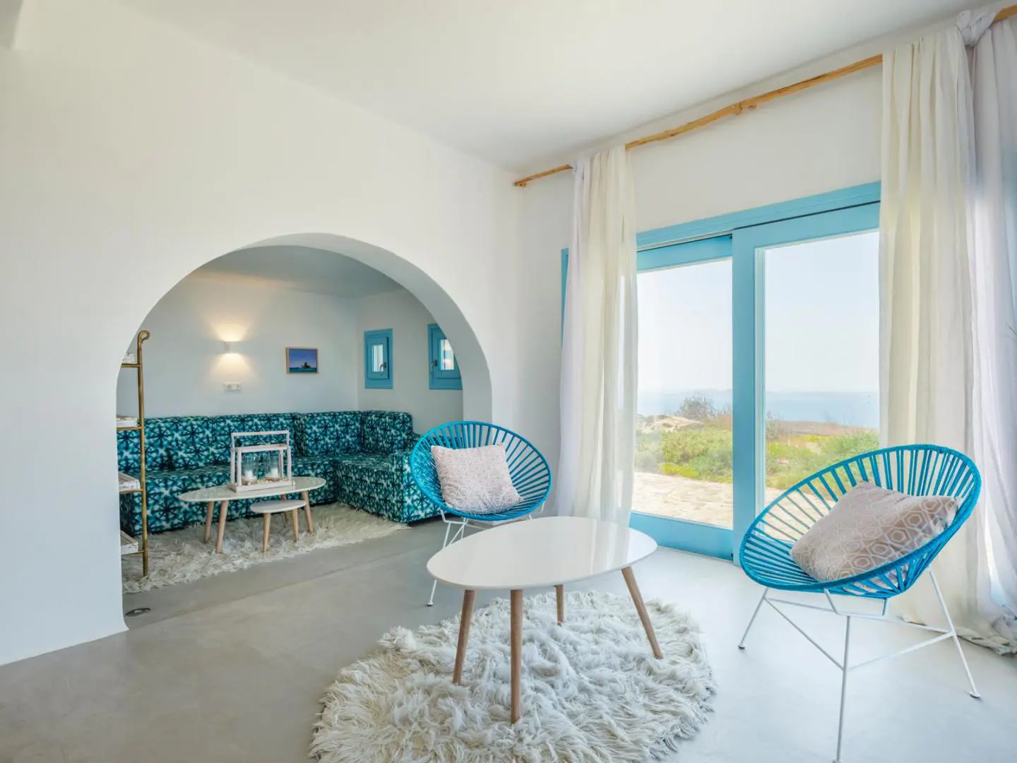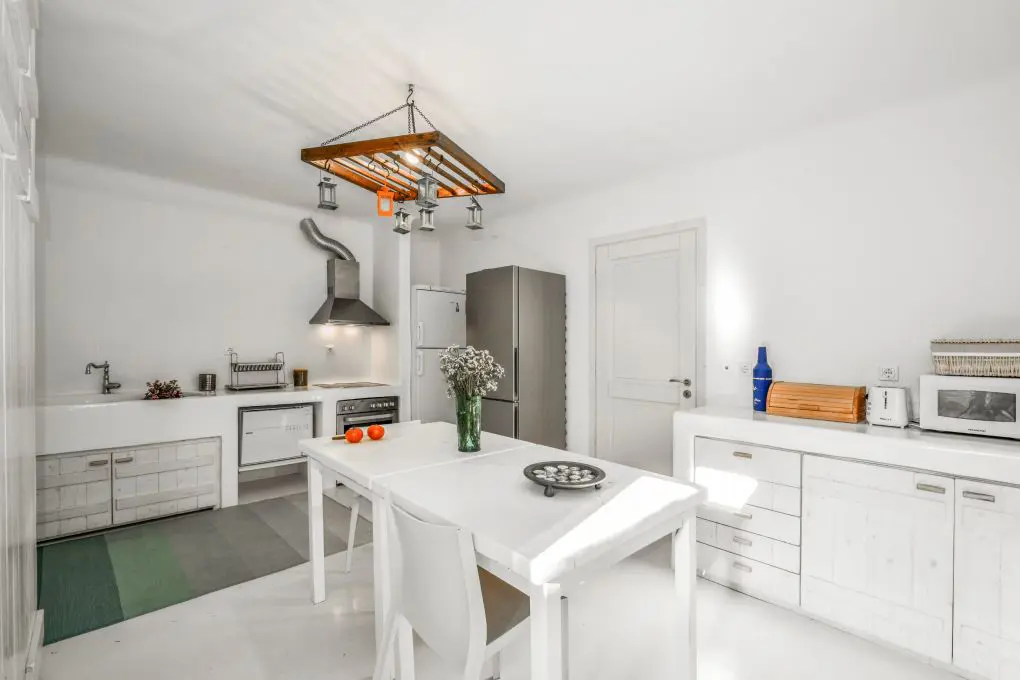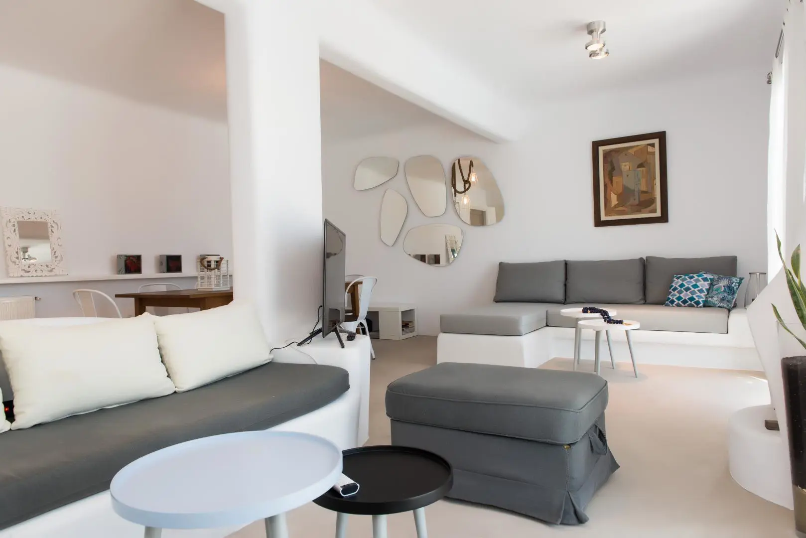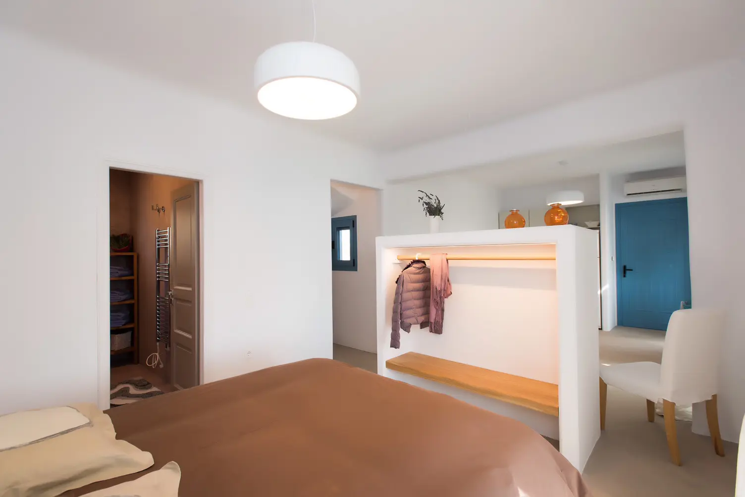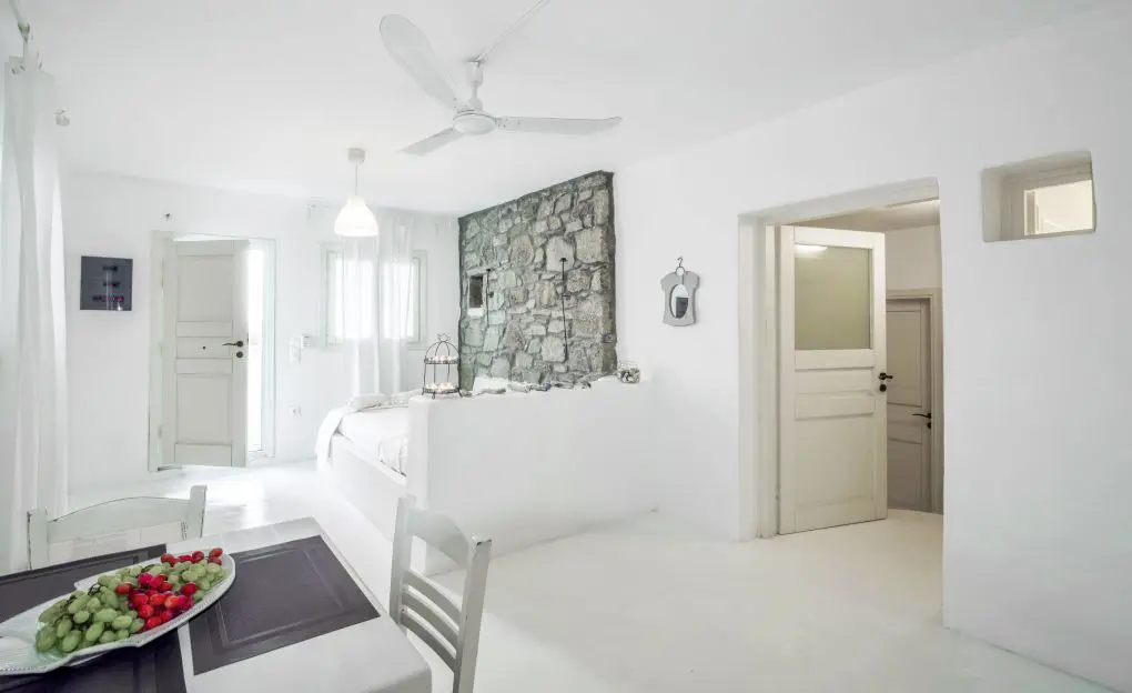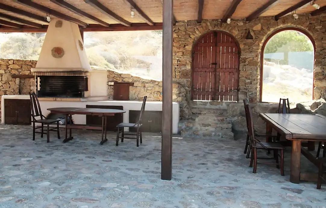 Occupying 600 sqm within a 4,000 sqm plot, the villa has been crafted to the highest standards, seamlessly blending natural elements with iconic Cycladic architecture. Clean white volumes, stone facades, wooden pergolas, and sculpted in-cave sections harmonize with the surrounding landscape, while the fluid integration of indoor and outdoor spaces creates a living experience deeply connected to the Aegean environment.