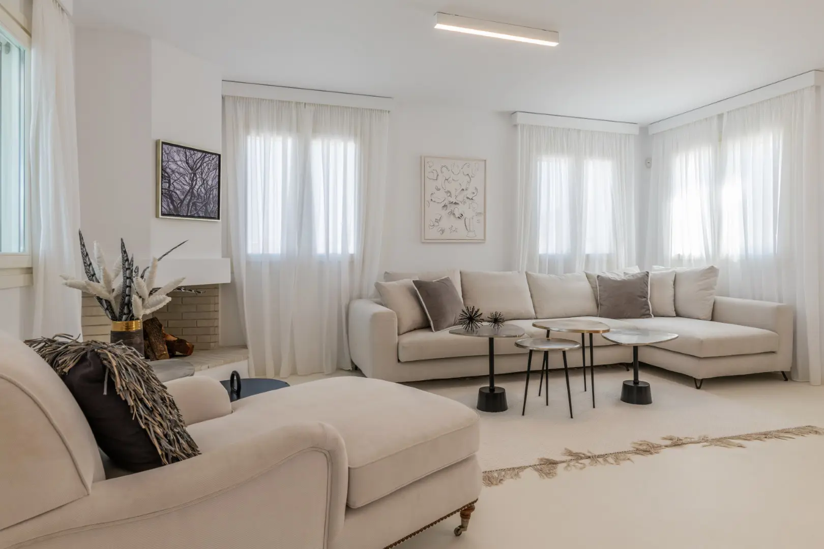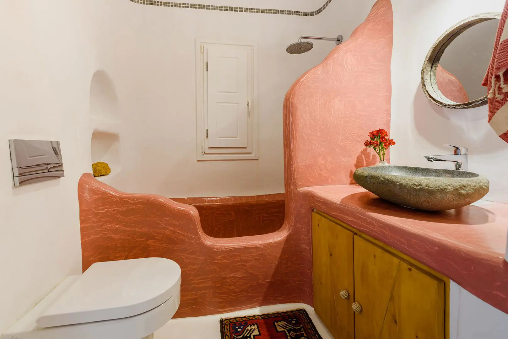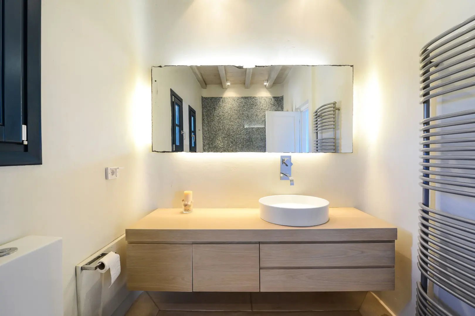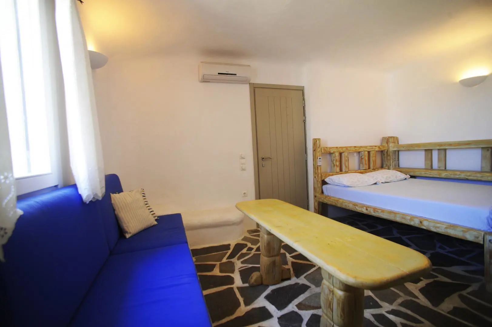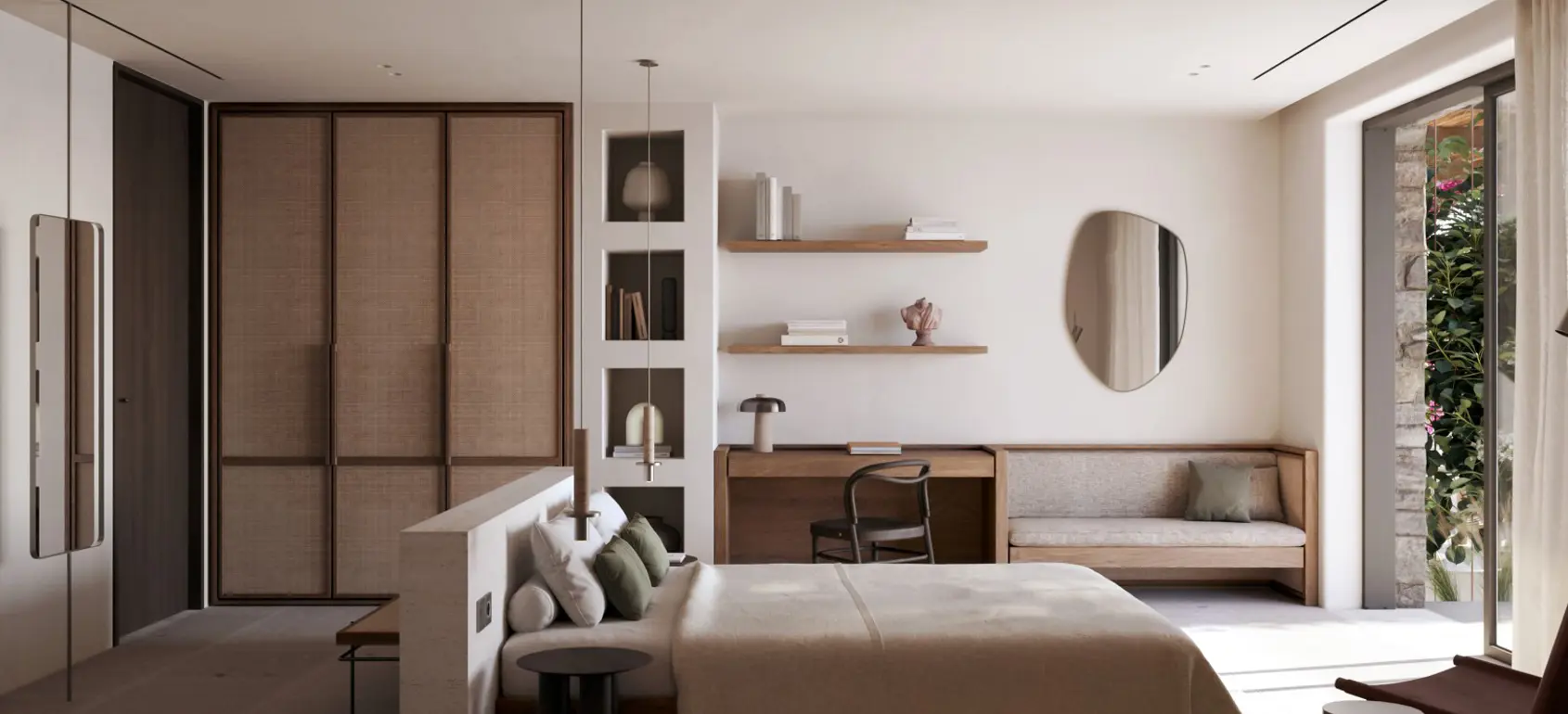 Occupying 600 sqm within a 4,000 sqm plot, the villa has been crafted to the highest standards, seamlessly blending natural elements with iconic Cycladic architecture. Clean white volumes, stone facades, wooden pergolas, and sculpted in-cave sections harmonize with the surrounding landscape, while the fluid integration of indoor and outdoor spaces creates a living experience deeply connected to the Aegean environment.