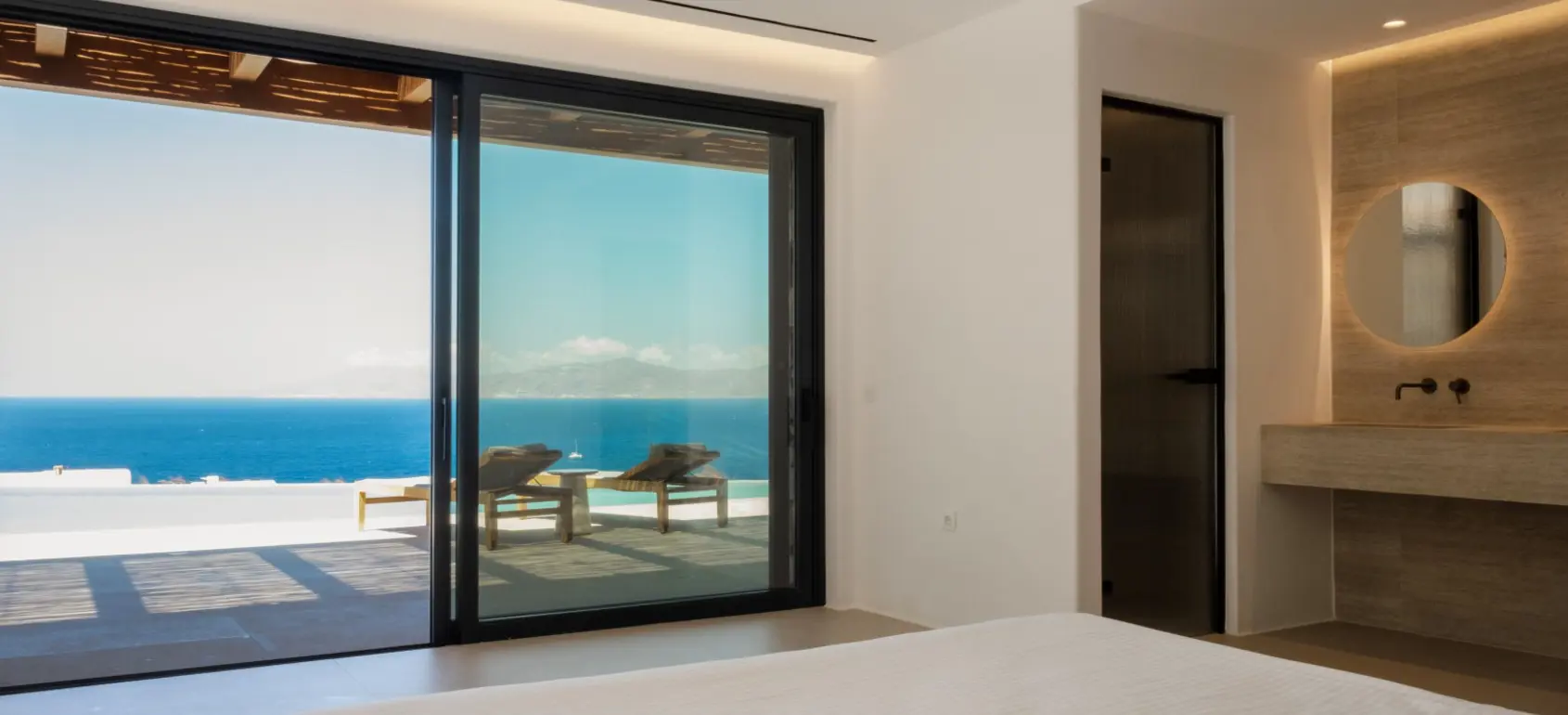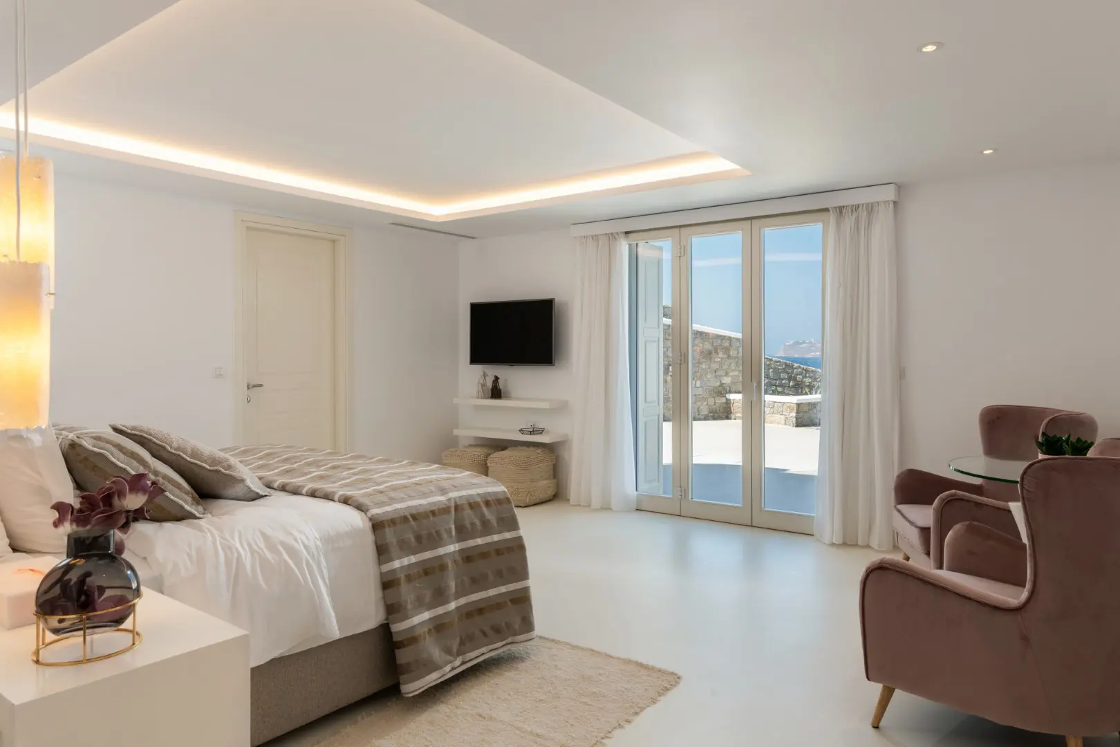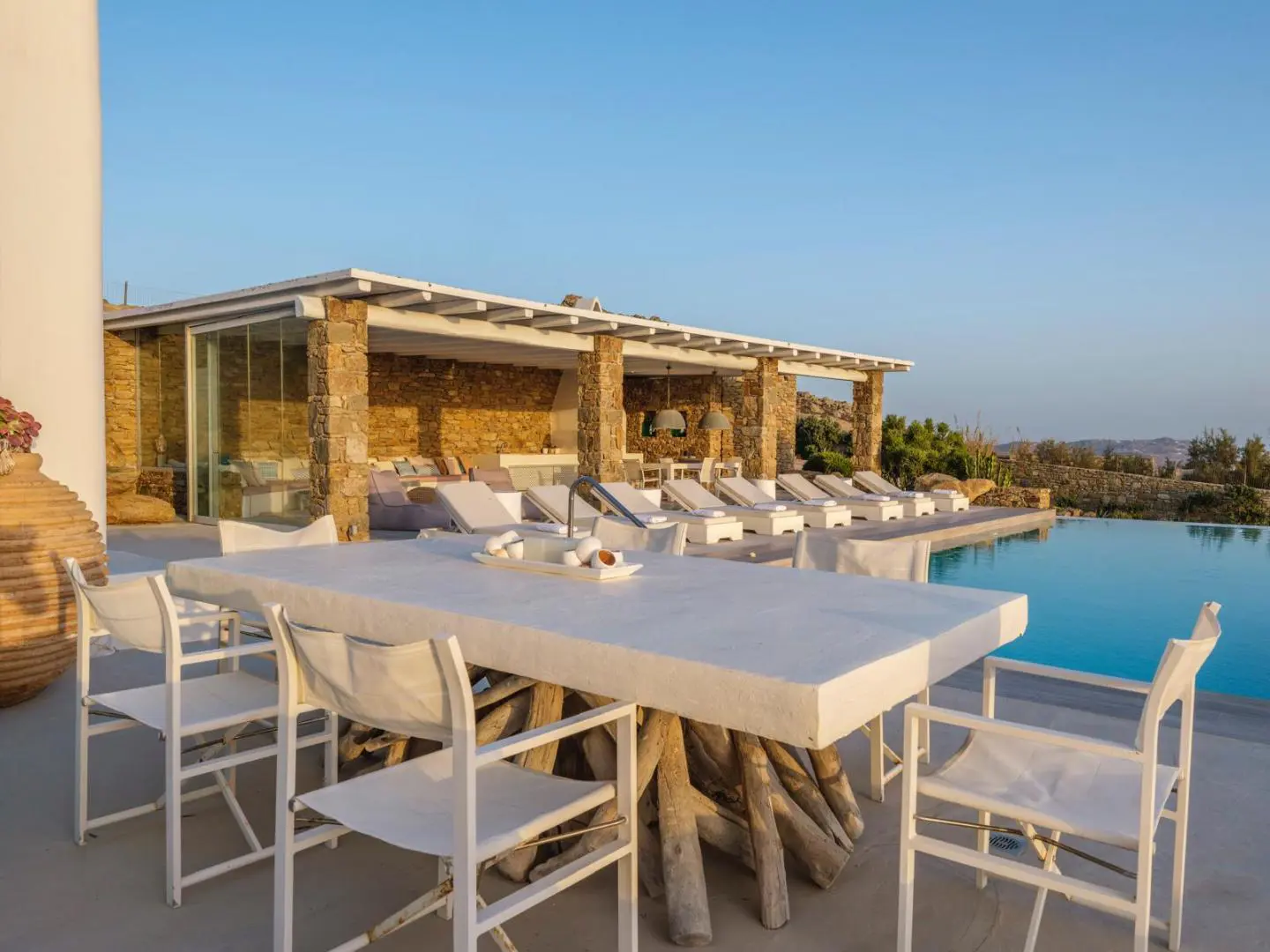 The property is enriched with premium amenities including a wine cellar, private gym, sauna, hammam, and multiple swimming pools. Each room has been thoughtfully designed to maximize natural light and frame breathtaking panoramas, complemented by expansive verandas and generous patios that embody the essence of Mykonian outdoor living.