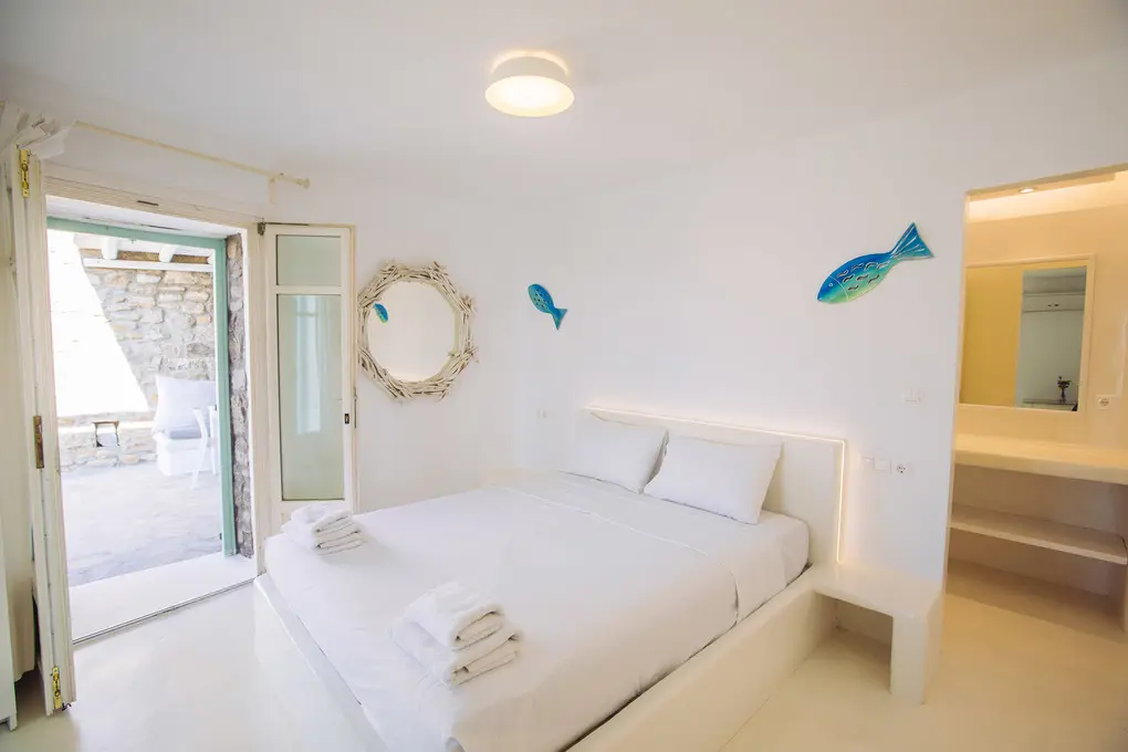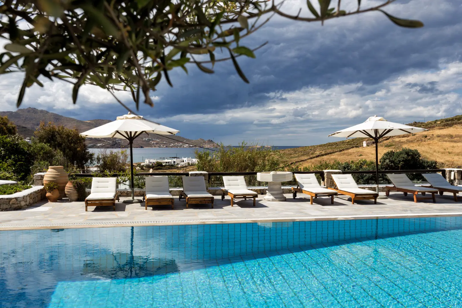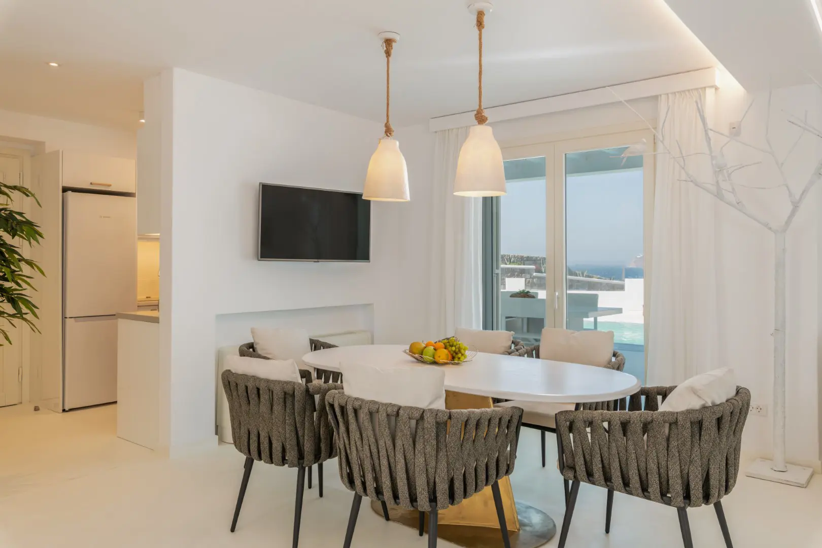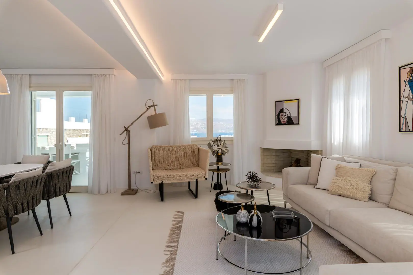 The property is enriched with premium amenities including a wine cellar, private gym, sauna, hammam, and multiple swimming pools. Each room has been thoughtfully designed to maximize natural light and frame breathtaking panoramas, complemented by expansive verandas and generous patios that embody the essence of Mykonian outdoor living.