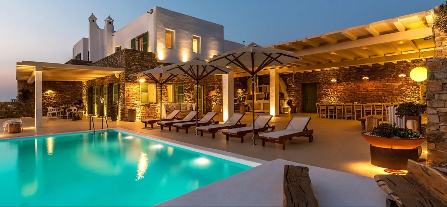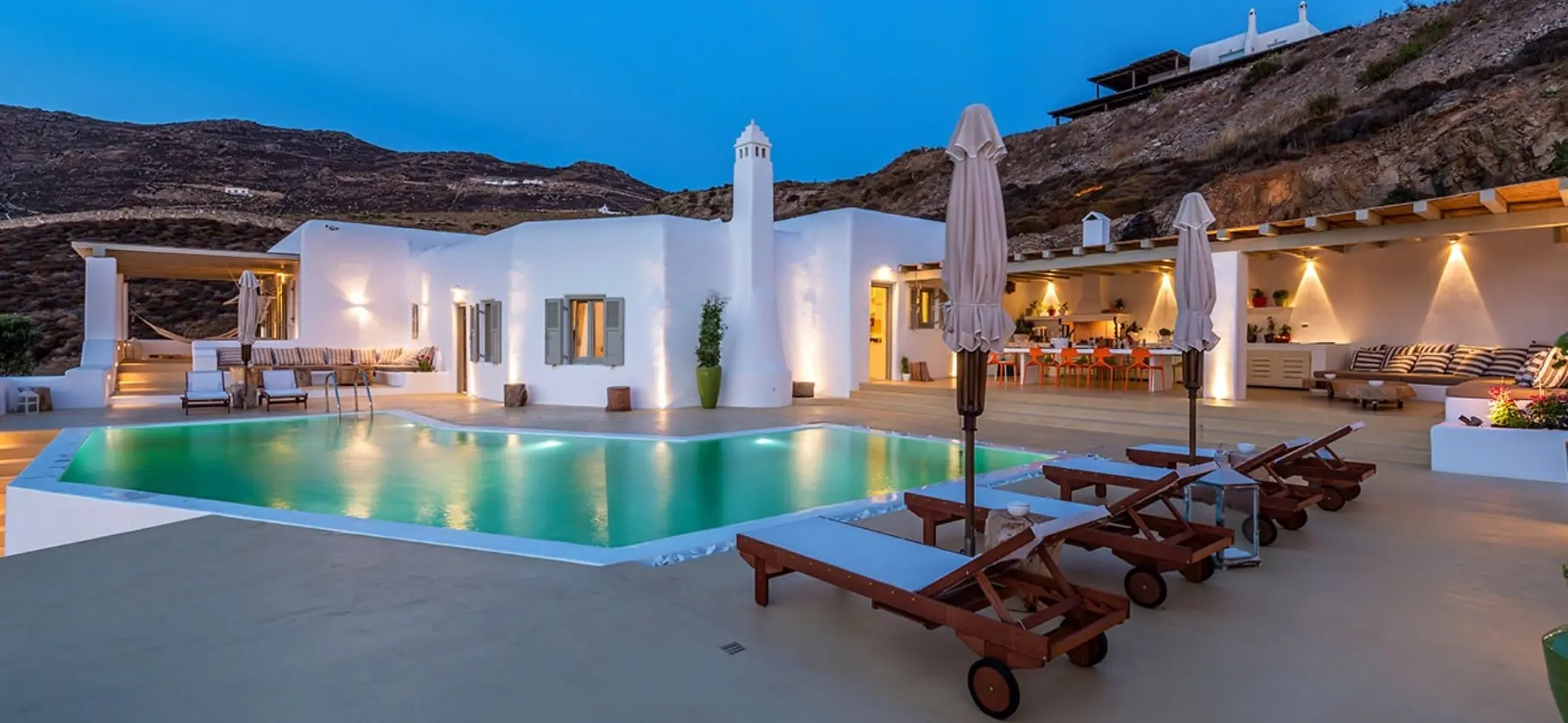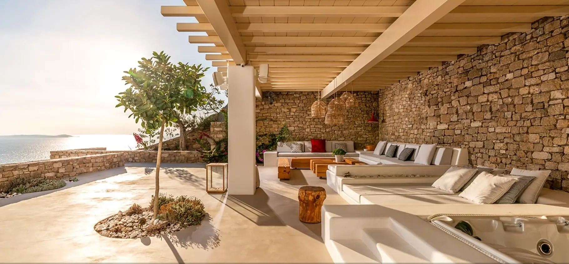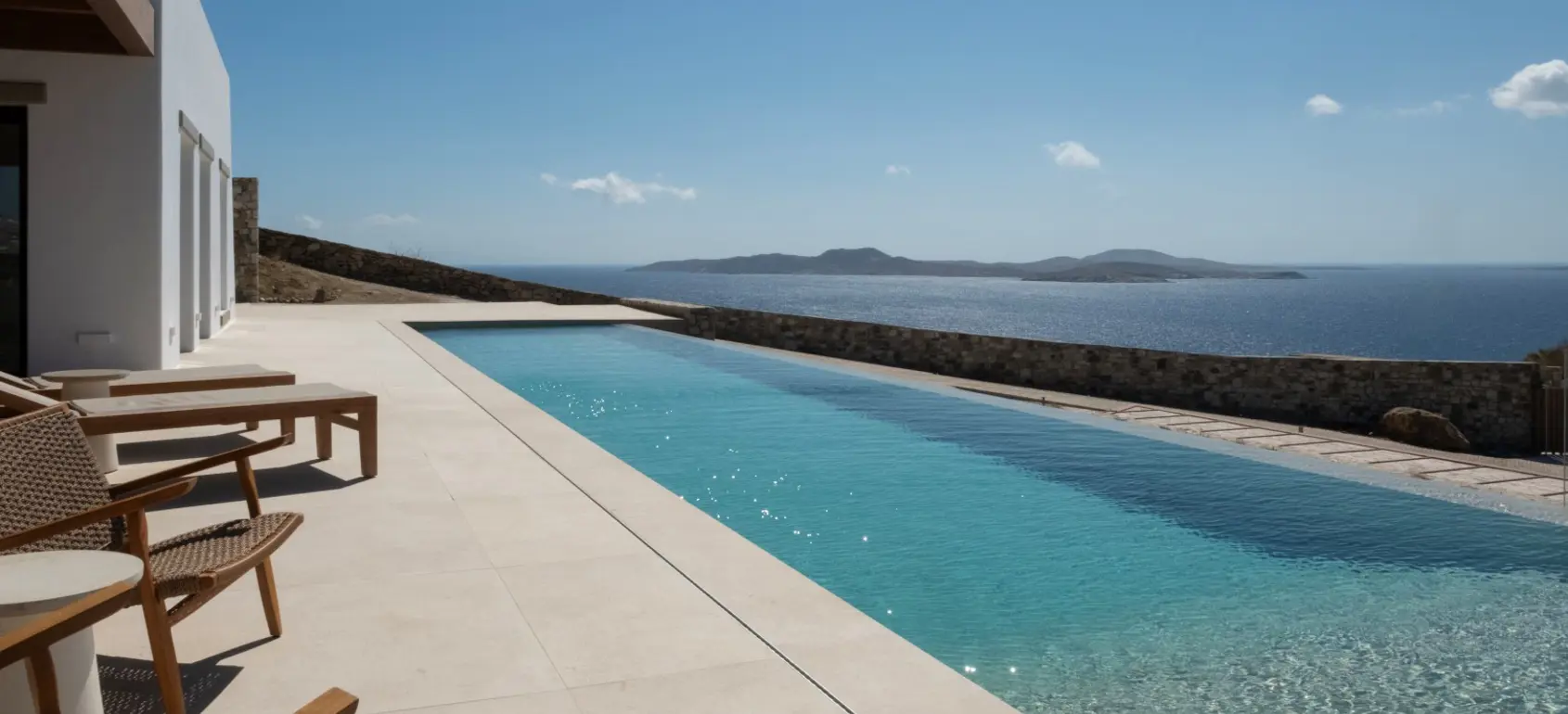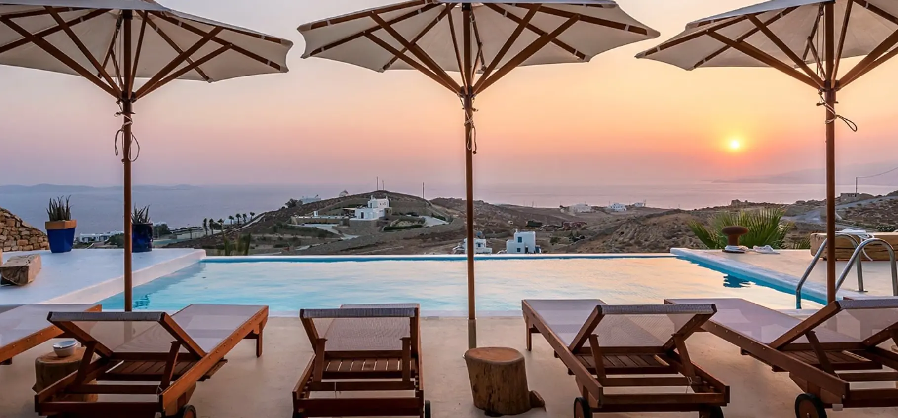 Beautiful villa overlooking Mykonos Island and Aegean Sea