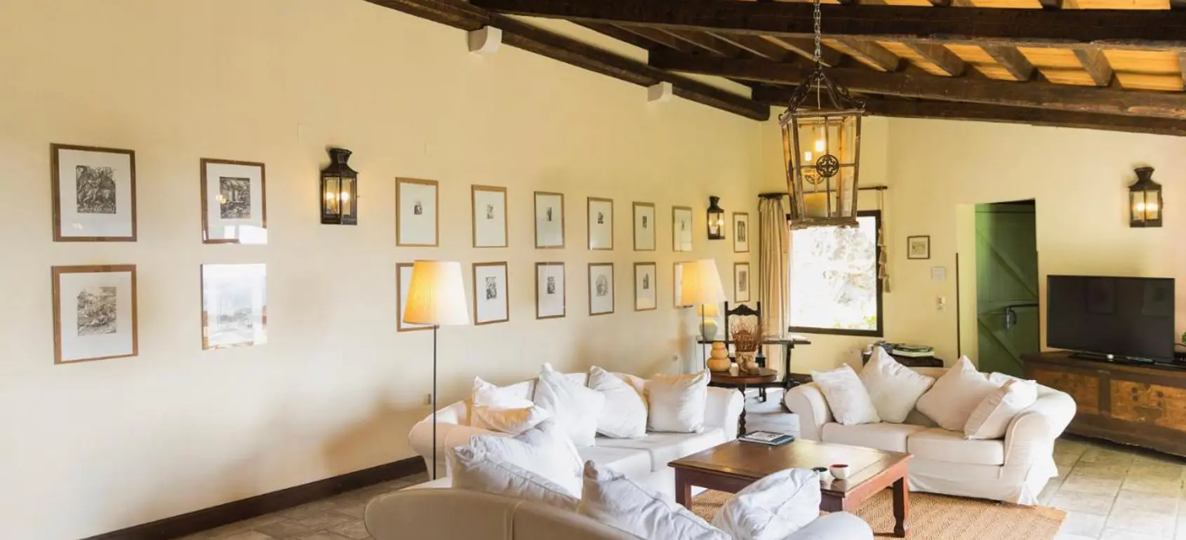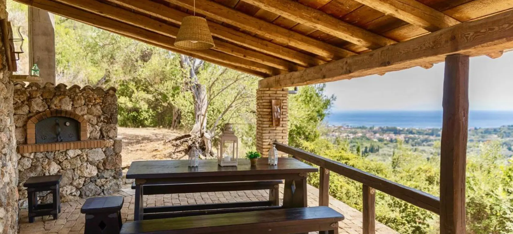 The villa features an outdoor pool, providing stunning views of the Ionian Sea and surrounding landscape. Its interior boasts a charming ambiance with beamed, included ceilings and antique furnishings. The air-conditioned living space includes a cozy fireplace, a spacious living room and a fully equipped kitchen with both a stove and a traditional wood-burning oven. The villa comprises three bedrooms and three bathrooms, ensuring privacy and convenience for the residents.