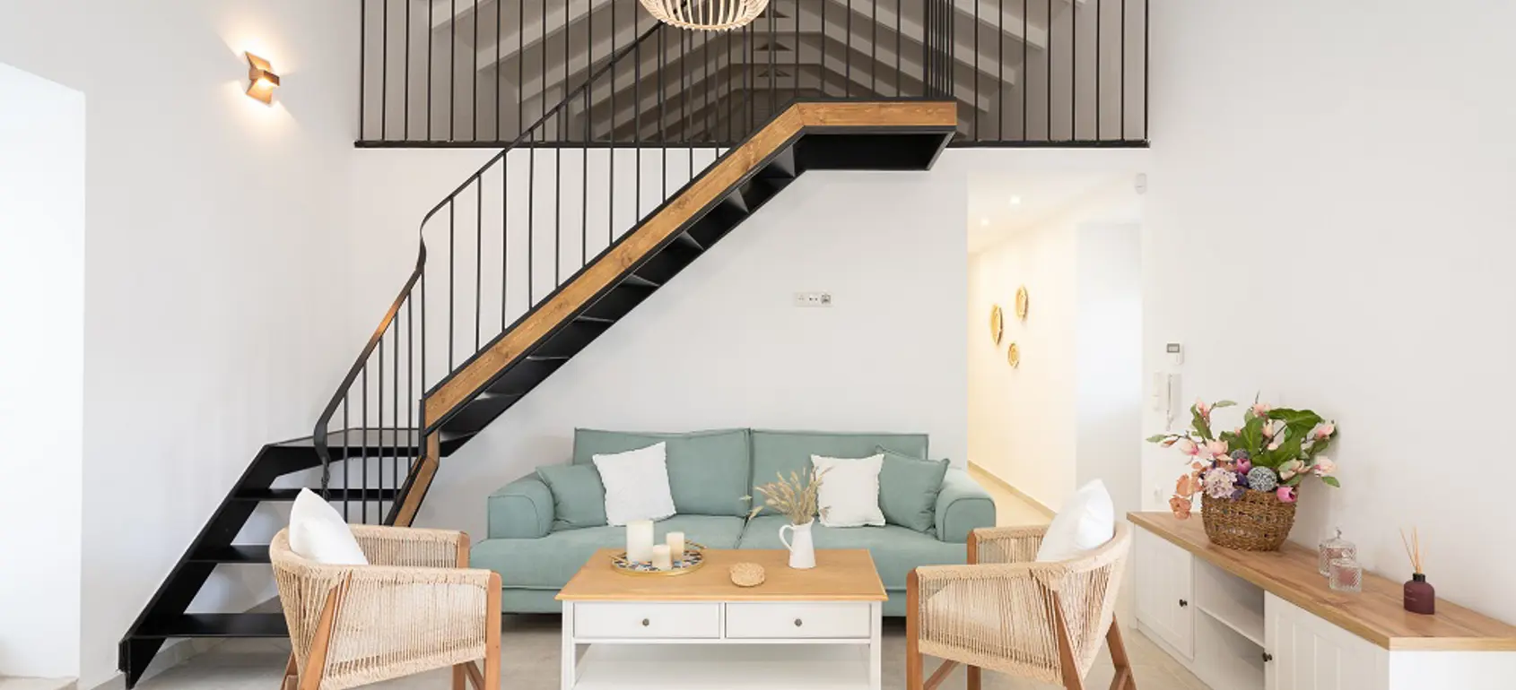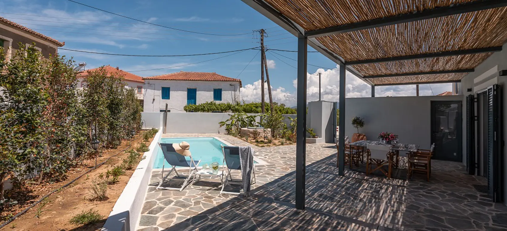 Nestled in the village of Evaggelismos, this residence offers the serenity of a sanctuary while remaining at the center of local life. Designed for comfort and calm, the home welcomes you with an open-plan living and kitchen area that exudes warmth and spaciousness.