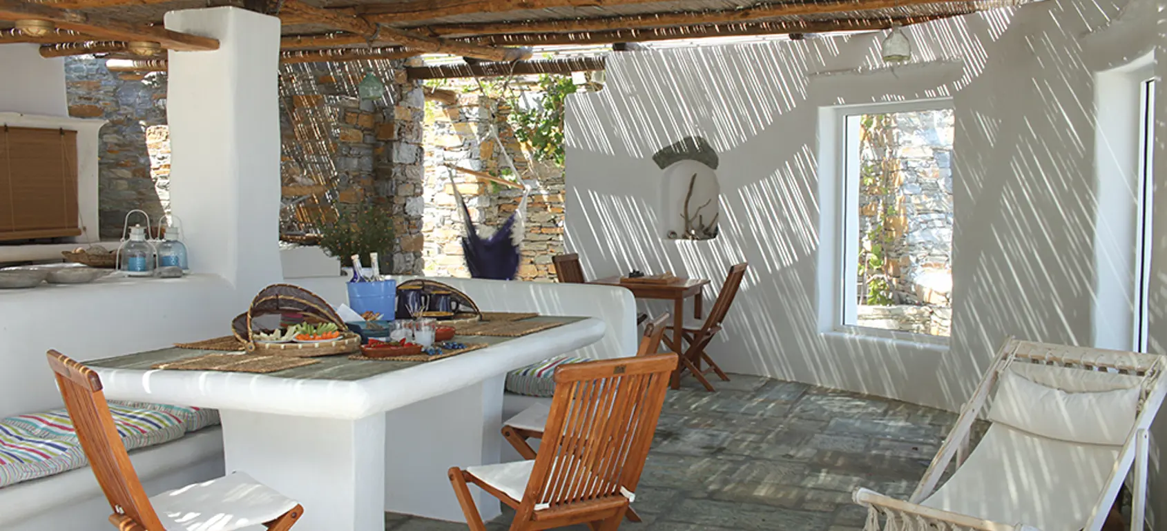 This is a seaside villa at the unspoilt Cycladic island of Kythnos, within only a few steps from the sea, accessed by a path. It is located at a secluded and tranquil location, ideal for those seeking a more relaxed atmosphere.