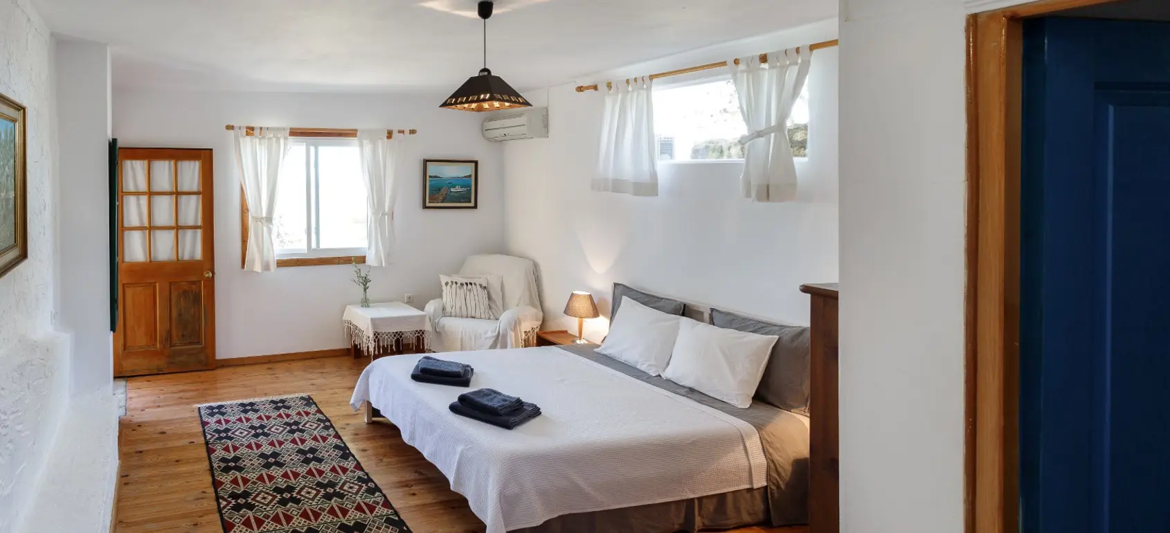 This unique property comprises three detached traditional homes on a hillside, 5,900 sqm land plot. It is situated 1 km from the pristine, white sand Punta beach and opposite Elafonisos, with panoramic views of the Lakonian Gulf.