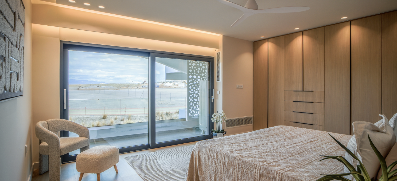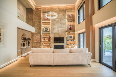 The apartment has been designed to accentuate the excellent levels of natural light, with clean, contemporary materials creating a sense of luxury but also tranquility and flow. The impressive living spaces with double height and much natural light, open to the veranda facing the park, which provides a private pool with hydrotherapy jets, so you can unwind while enjoying the view. The master bedroom, positioned on the upper floor, overlooks the park and has an en-suite bathroom and walk-in wardrobe. Each of the other bedrooms has its own en-suite bathroom, view and private balcony. Other highlights include the private elevator connecting both levels, the high quality materials used and the smart-home amenities.