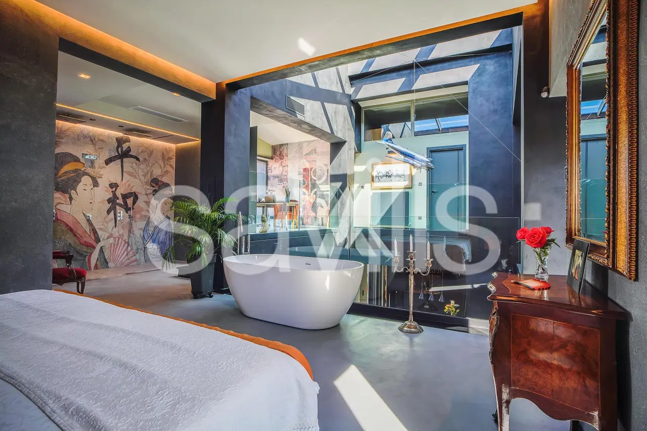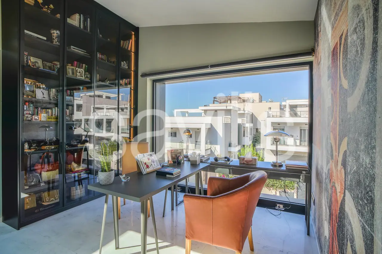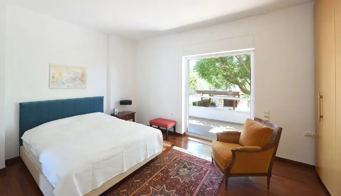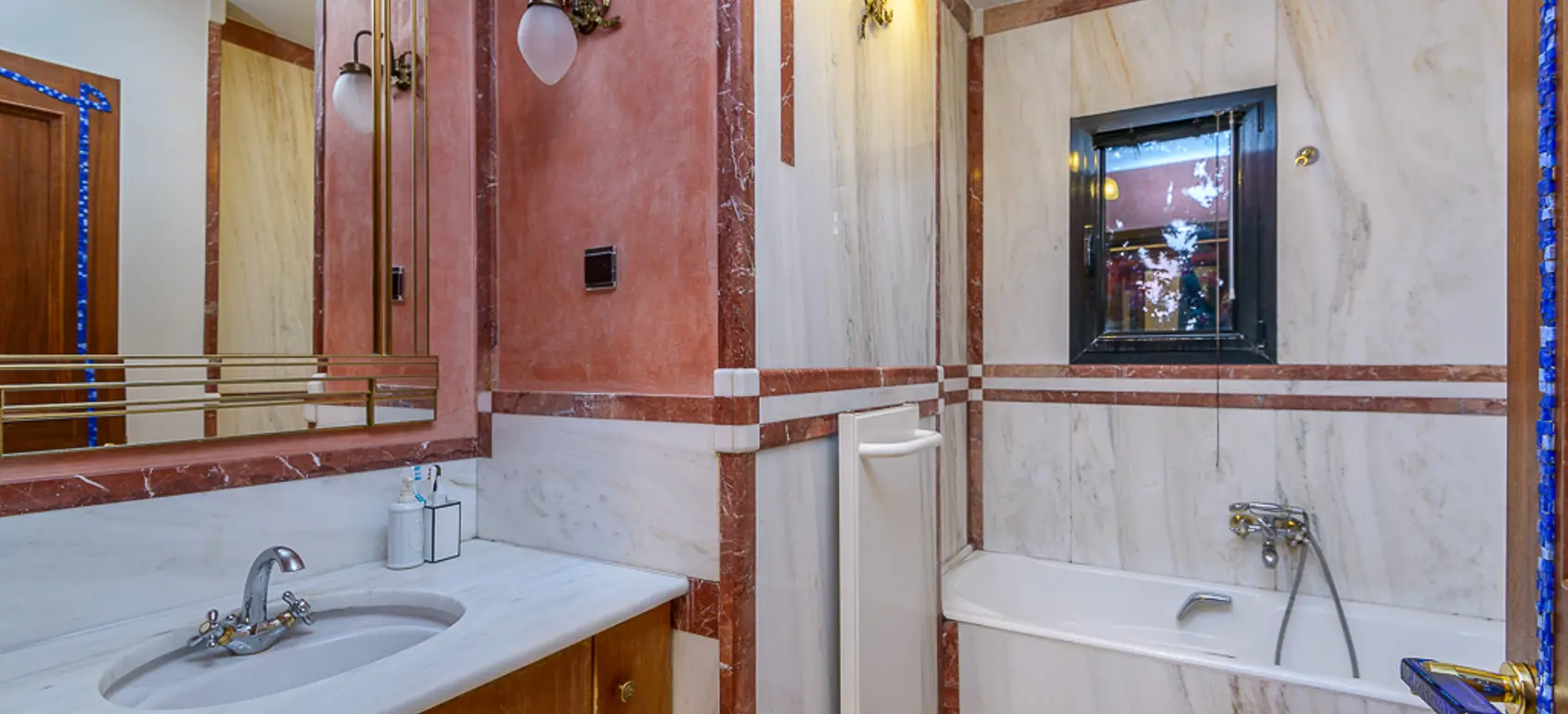 Internal accommodation extends to 600 sqm and each room has been skilfully designed to exploit the levels of natural light throughout. Inside the villa’s walls, you will find luxurious, traditional living spaces. The ground floor is composed of the living room, the dining area, the kitchen and a bathroom. There are three bedrooms and two bathrooms on the first floor, while on the lower level there is a playroom with extra kitchenette, two more bedrooms and auxiliary spaces, along with the internal swimming pool and sauna area.