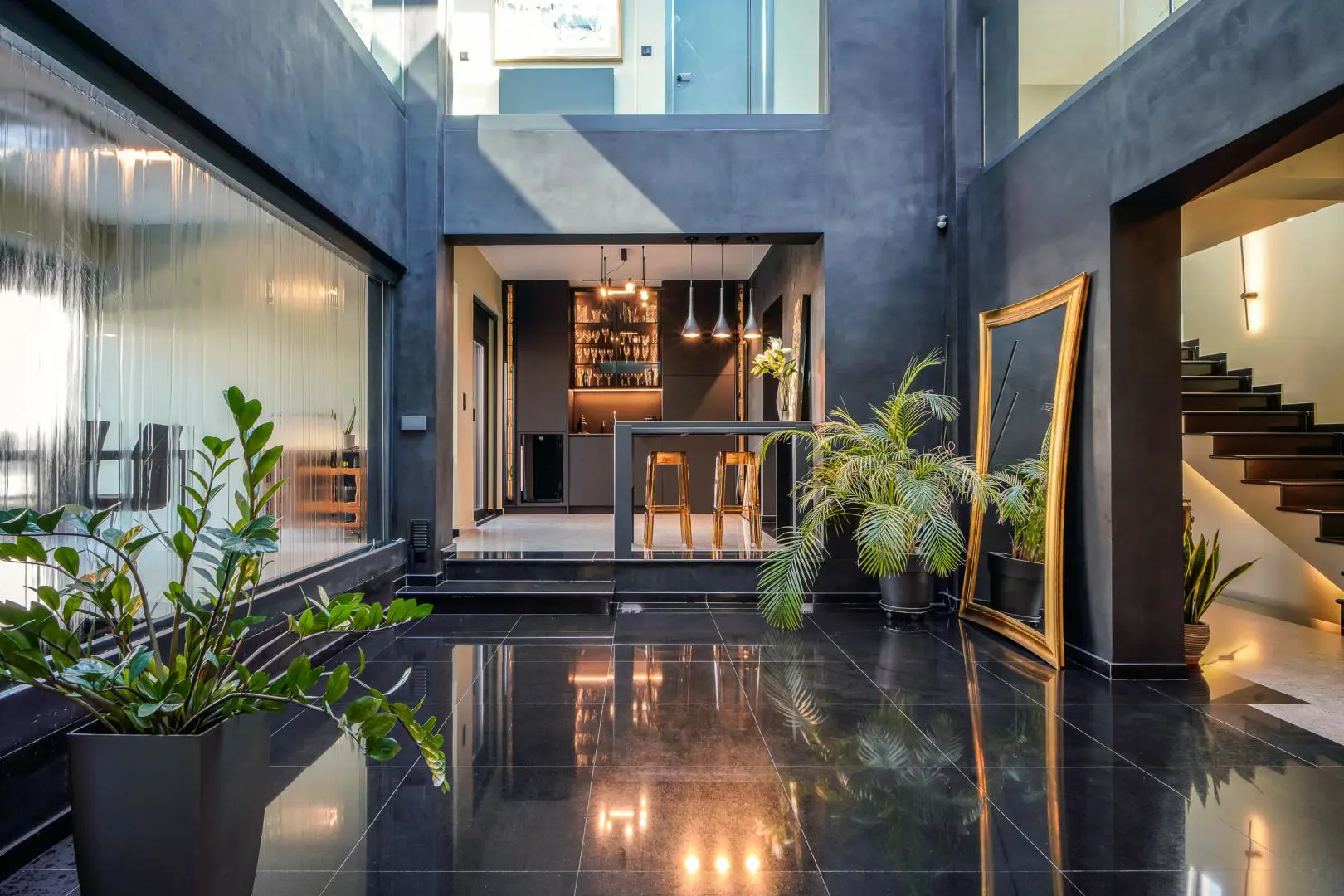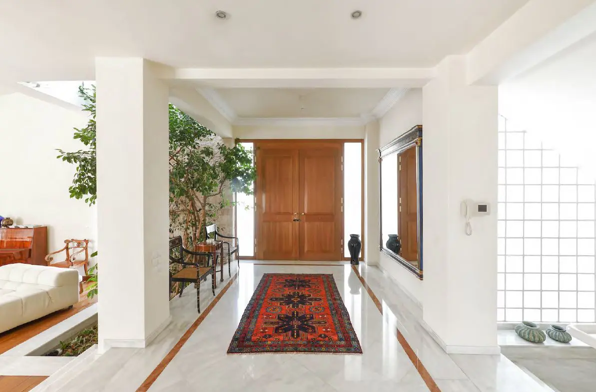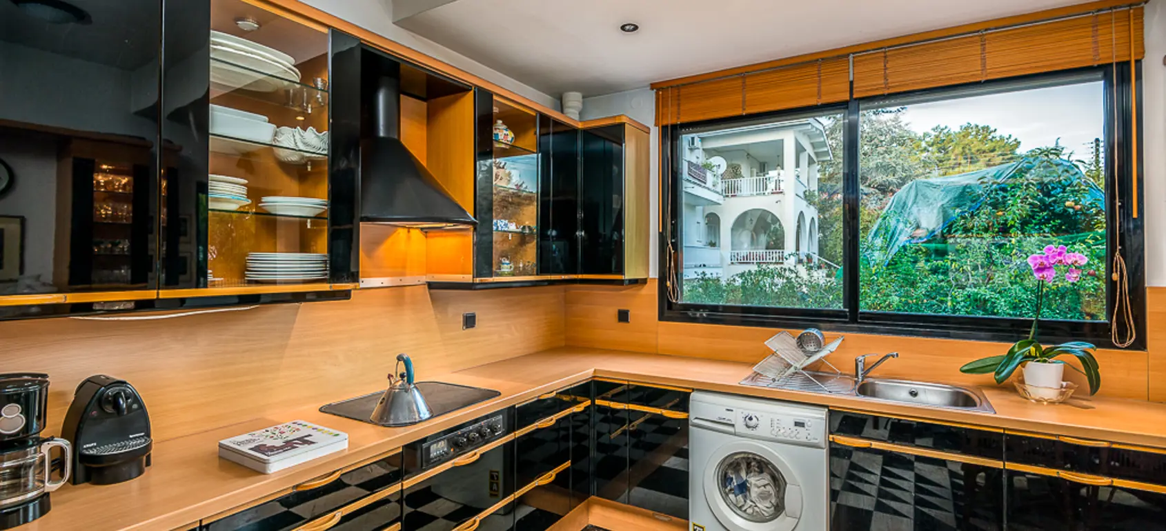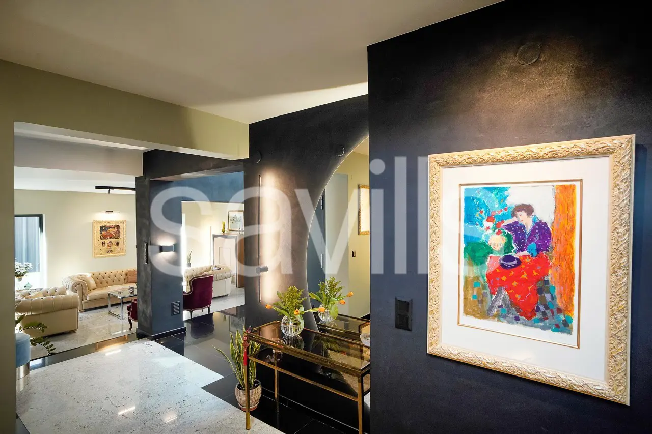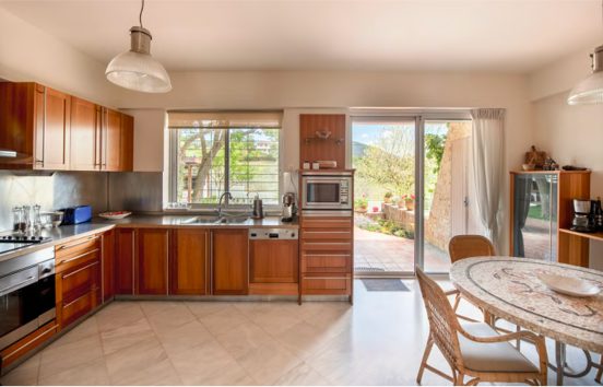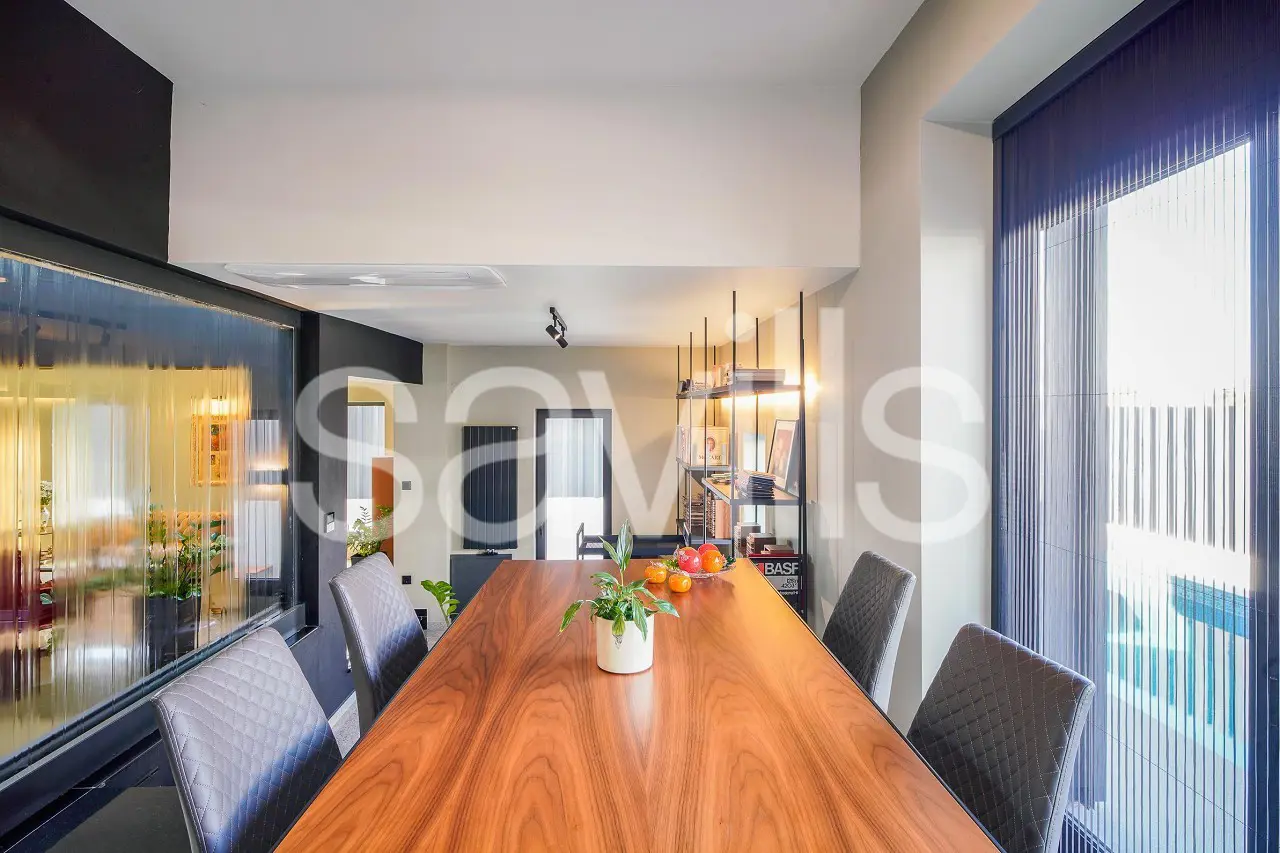 Internal accommodation extends to 600 sqm and each room has been skilfully designed to exploit the levels of natural light throughout. Inside the villa’s walls, you will find luxurious, traditional living spaces. The ground floor is composed of the living room, the dining area, the kitchen and a bathroom. There are three bedrooms and two bathrooms on the first floor, while on the lower level there is a playroom with extra kitchenette, two more bedrooms and auxiliary spaces, along with the internal swimming pool and sauna area.