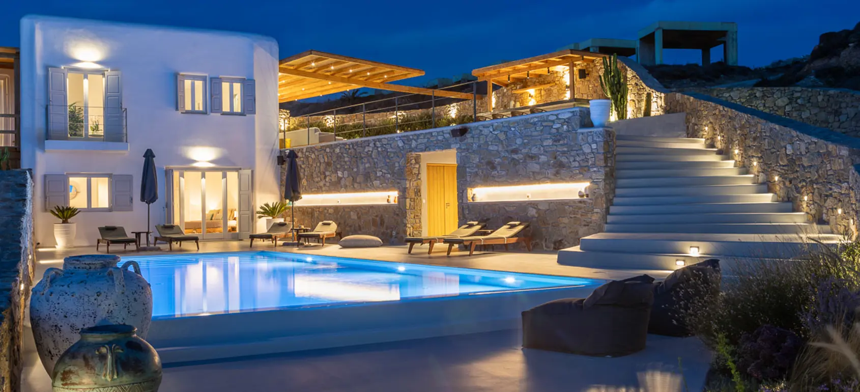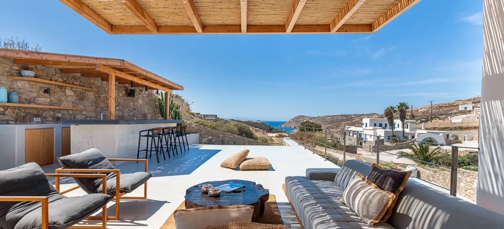 Beautiful villa overlooking Mykonos Island and Aegean Sea