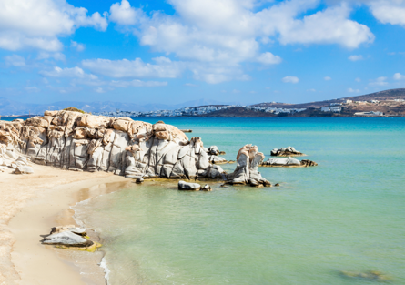 Paros, as one of the most beautiful Cycladic islands, attracts thousands of tourists every year. It offers a combination of inviting sandy beaches, picturesque villages and interesting nightlife, resulting in an assortment of visitors. Parikia, also called Paros town or Hora, is the capital of Paros island and has about 3,000 inhabitants. Parikia was built on the same site where the ancient city and capital used to stand. This little town is the commercial and cultural centre of Paros as well as the main harbour of the island, serving many other islands. It is built amphitheatrically around the port and has a typical Cycladic architecture, with whitewashed cubic and flat roofed houses with spare architectural lines and coloured wooden doors, windows and balconies. On the entrance of the port, a superb whitewashed windwill welcomes the visitors and constitutes the trademark of Paros. Numerous restaurants, taverns, cafes, bars and night clubs are lining the one side of the coast road (which is closed for the cars during the evening) while the town’s beach is boarding the second part of the road. Paros is located at 2 ½ hours by high speed ferry from the Port of Piraeus.