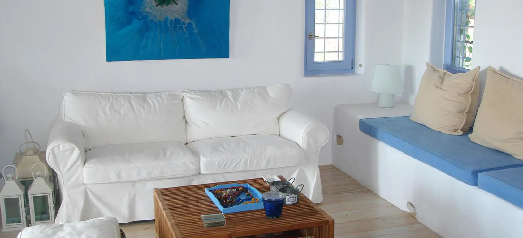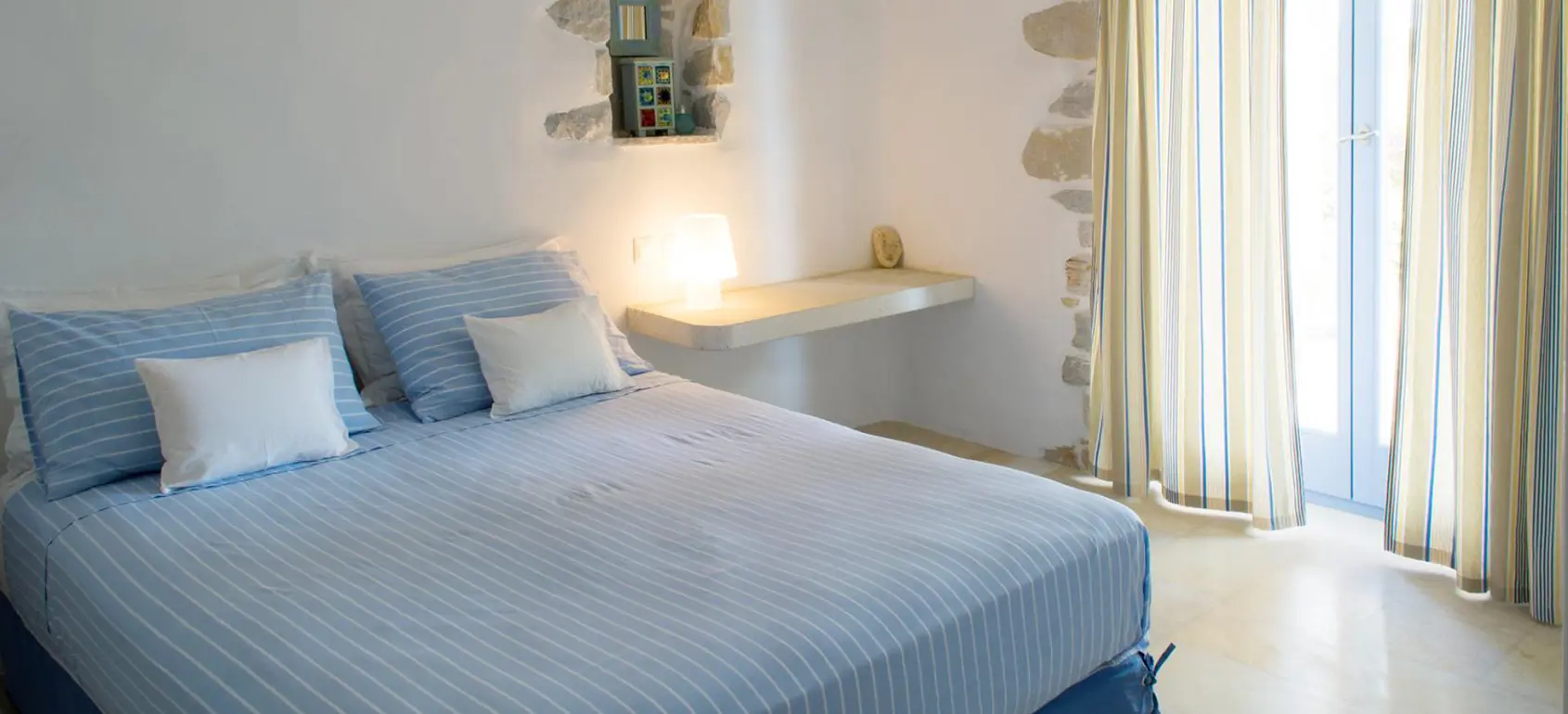 The property is situated just 100m from the stunning Santa Maria beach, one of Paros most popular beaches, with perfect, clear waters and sun-drenched sand.