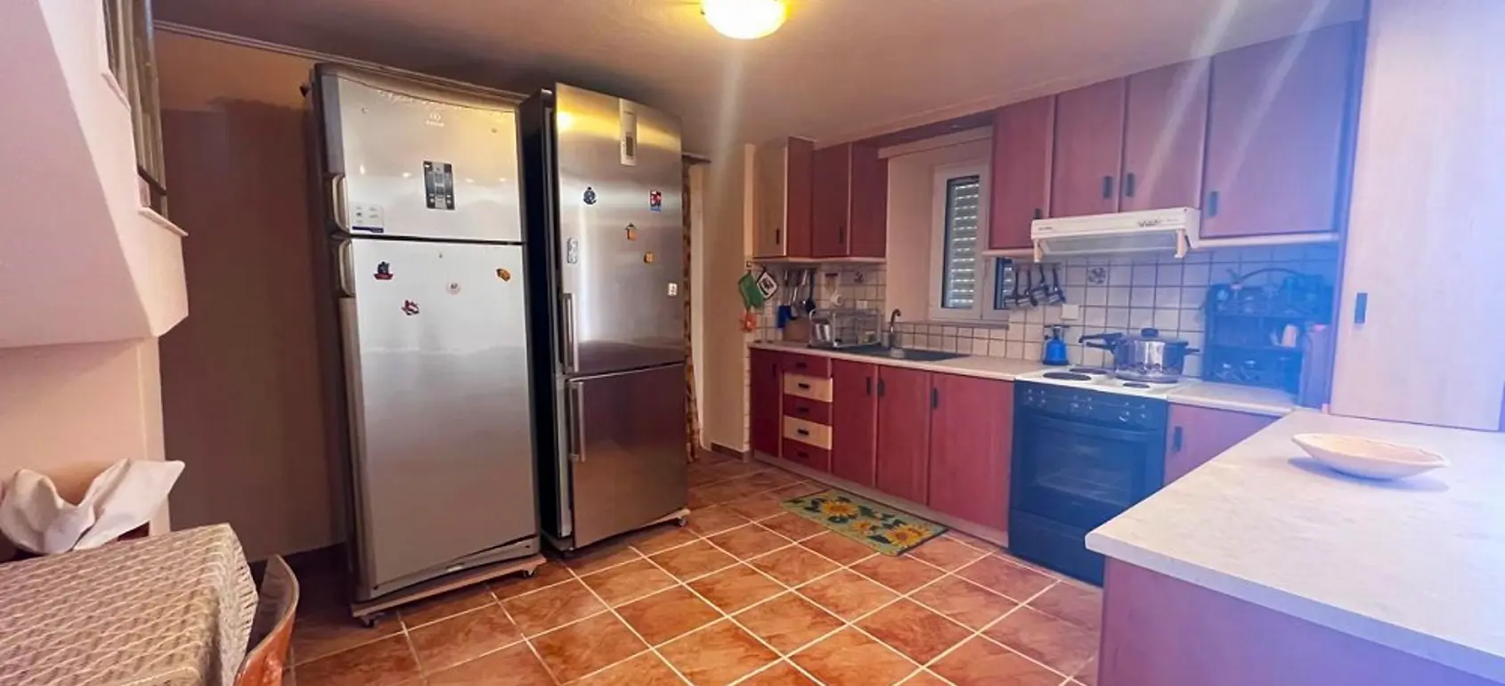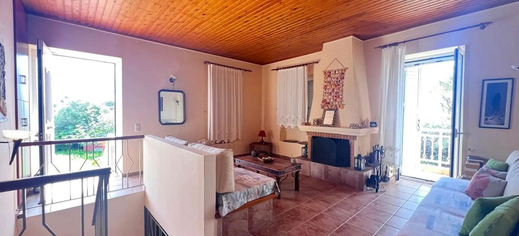 This traditional holiday house offers rest, relaxation and privacy. Once inside, five bedrooms and five baths are spread across 190 sqm of two-levels living space. It also has a nice private terrace overlooking the sea, while the plot is full of trees.