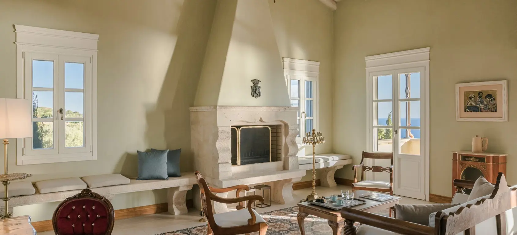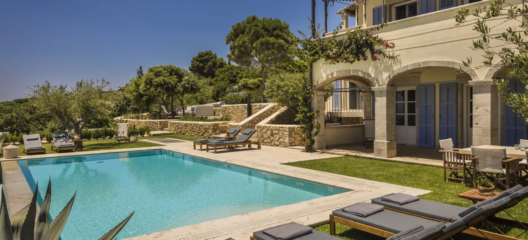 Nestled in a serene location on the island of Kefalonia, this exquisite villa offers the perfect retreat for those seeking relaxation under the Greek sun in a private setting. Just moments away from vibrant beaches and breathtaking landscapes, it provides an unparalleled combination of tranquility and convenience. Blending the timeless charm of Ionian architecture with the refined elegance of Venetian and Tuscan interior aesthetics, the villa presents a seamless fusion of tradition and sophistication. Spanning three floors, its elevated position ensures exclusivity while allowing easy access to key destinations. The interiors are thoughtfully designed, featuring elegant and comfortable furnishings, complemented by carefully curated artworks that enhance the luxurious ambiance. The property boasts five well-appointed bedrooms, including a spacious primary suite with generous closet space, along with six beautifully designed bathrooms and inviting living areas ideal for entertaining.