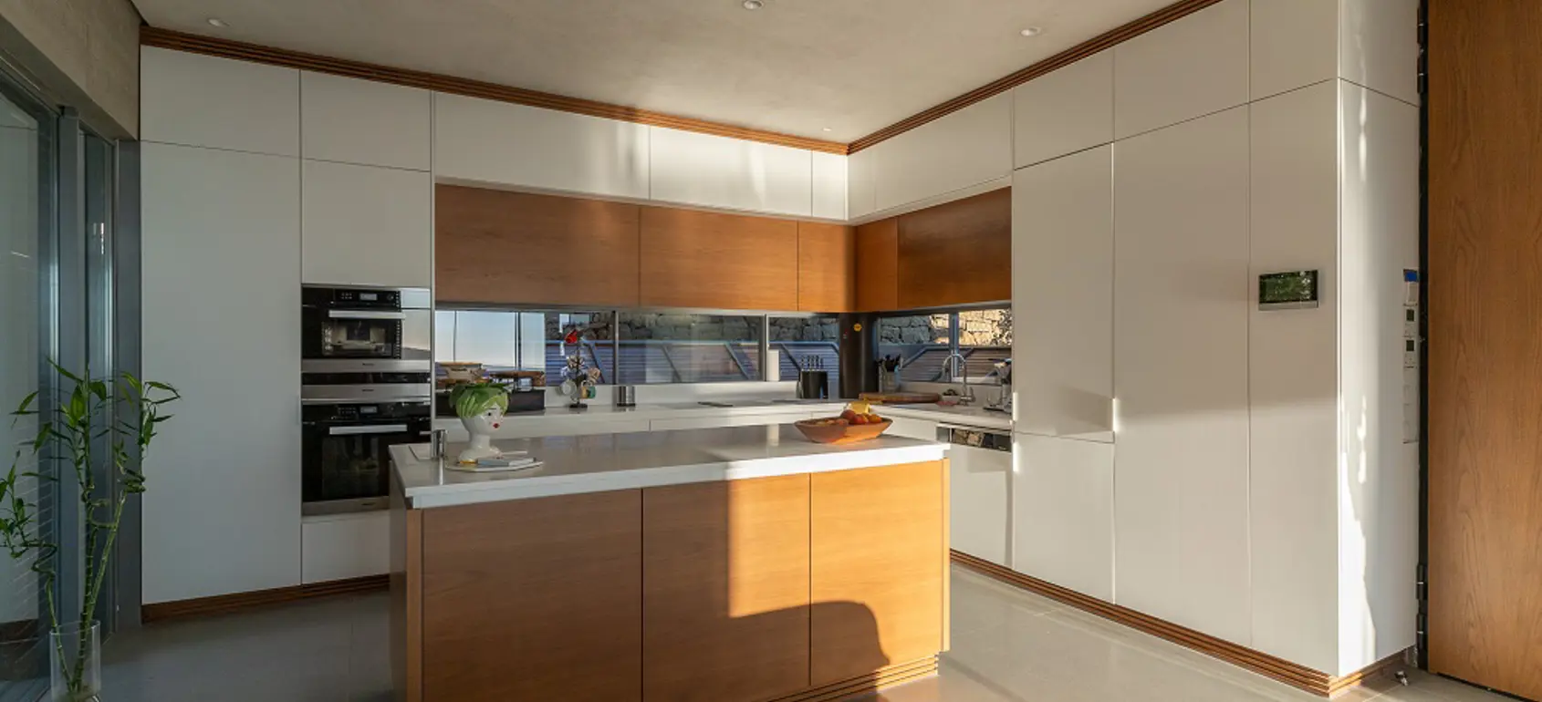 Step into a world of refined elegance as you enter this stunning villa, where open-concept living unfolds across the ground floor in a spacious and beautifully designed layout. The seamless integration of the living, dining, and kitchen areas creates an inviting atmosphere that exemplifies modern coastal living at its finest. Built in 2020, the villa spans over 180 sqm and features three well-appointed bedrooms and two stylish bathrooms. Every room is bathed in natural light, thanks to expansive windows that frame breathtaking views of the sea. The interiors are thoughtfully curated with natural wood finishes, soft lighting, and earthy tones, with an industrial style touch, cultivating a serene and sophisticated ambiance throughout.