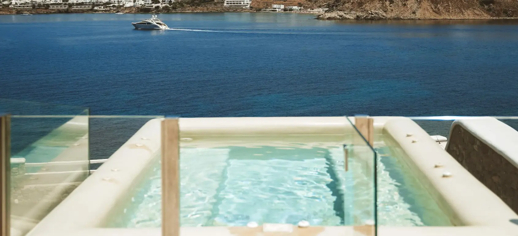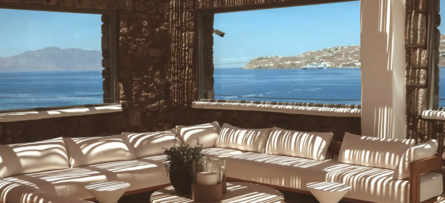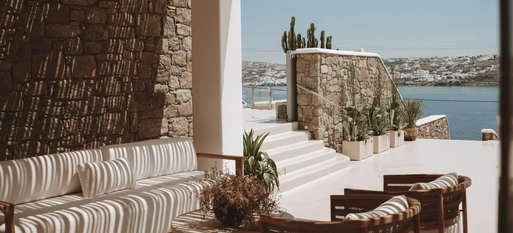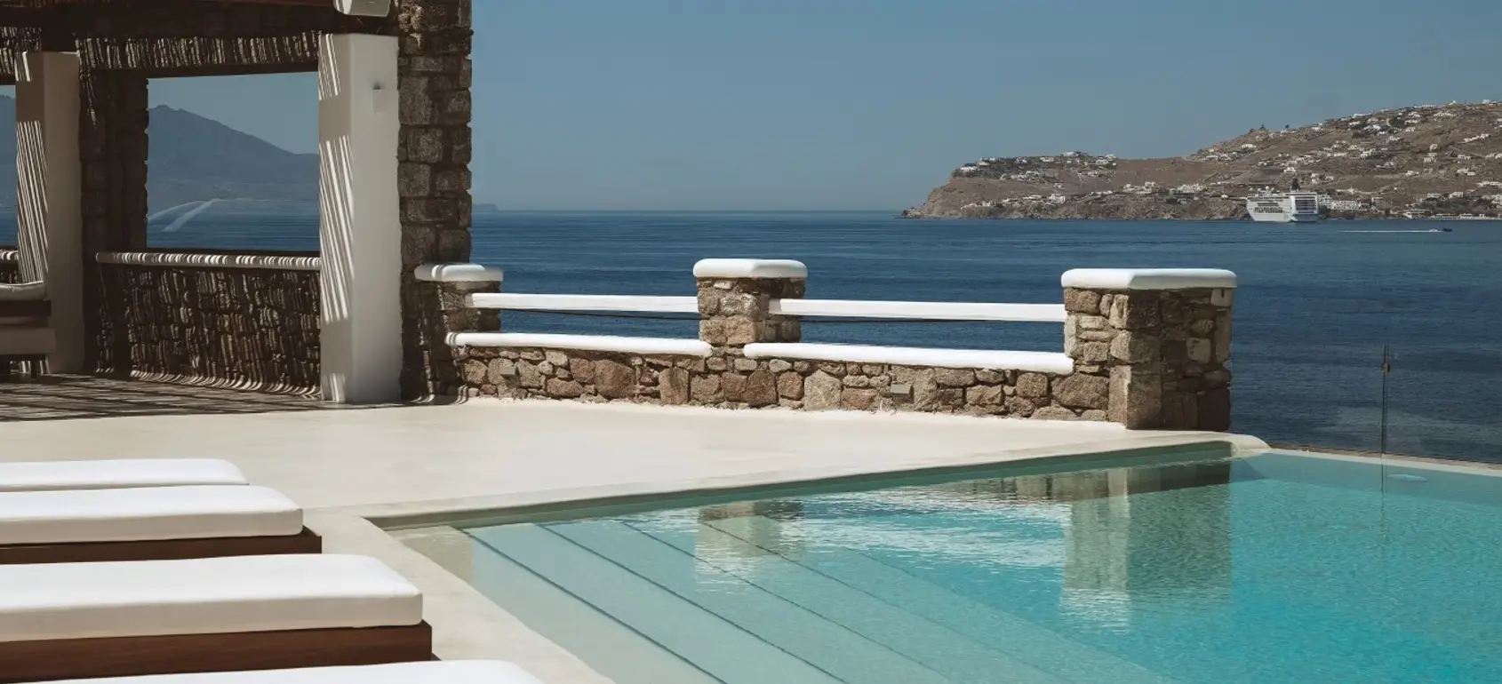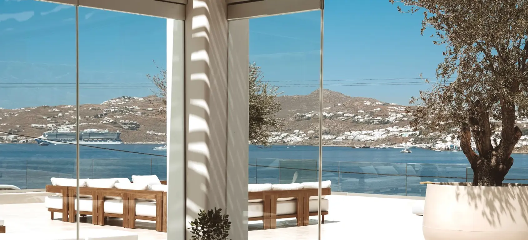 Beautiful villa overlooking Mykonos Island and Aegean Sea