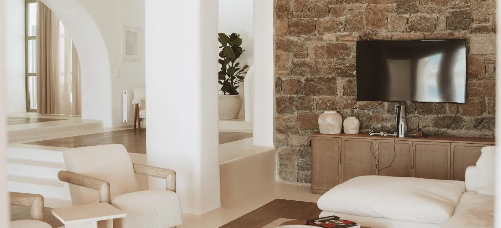 This exceptional, smart-home, villa seamlessly blends elegance, comfort, and architectural sophistication to offer guests an unparalleled retreat in one of Mykonos most serene settings. Fully renovated in 2018, the property stands as a testament to refined design and thoughtful functionality.